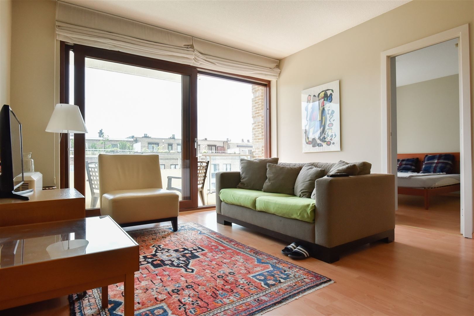 At the very pleasant area of "Châtelain", an exceptional design renovated apartment as Duplex penthouse( 1st & 2nd floors) in a house of the 1900's - The living room of +/- 50 m2 with fire place is facing a large terrace on South West with view over the gardens - Quiet and bright, this apartment is furnished with very design furniture, full of taste - American equipped kitchen with gas. At the upper floor : 2 nice bedrooms with dressing - Bathroom and Italian shower - Equipped laundry - Energetic Cat. E - Parking available in the neighborhood.