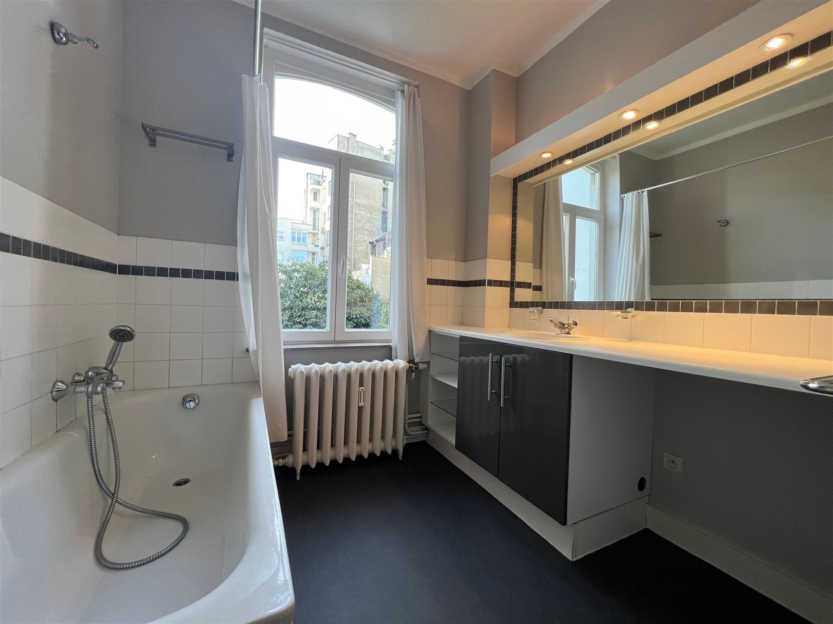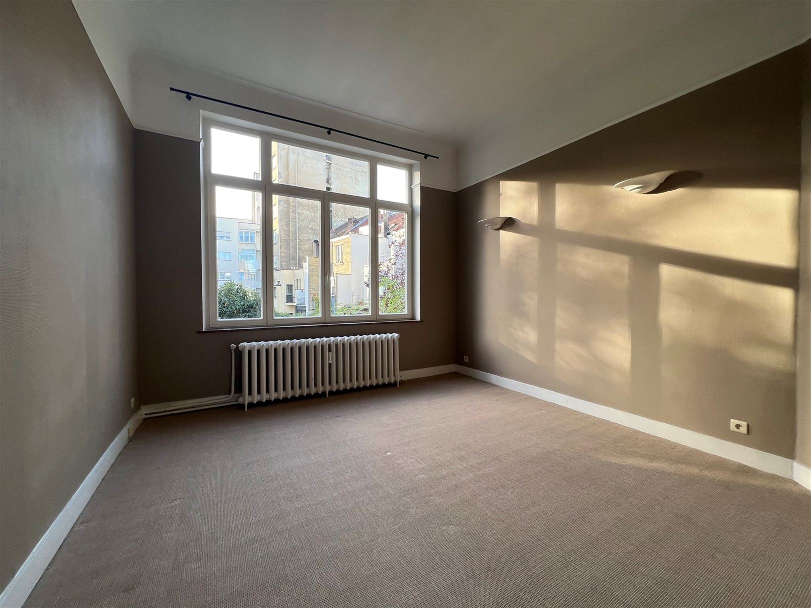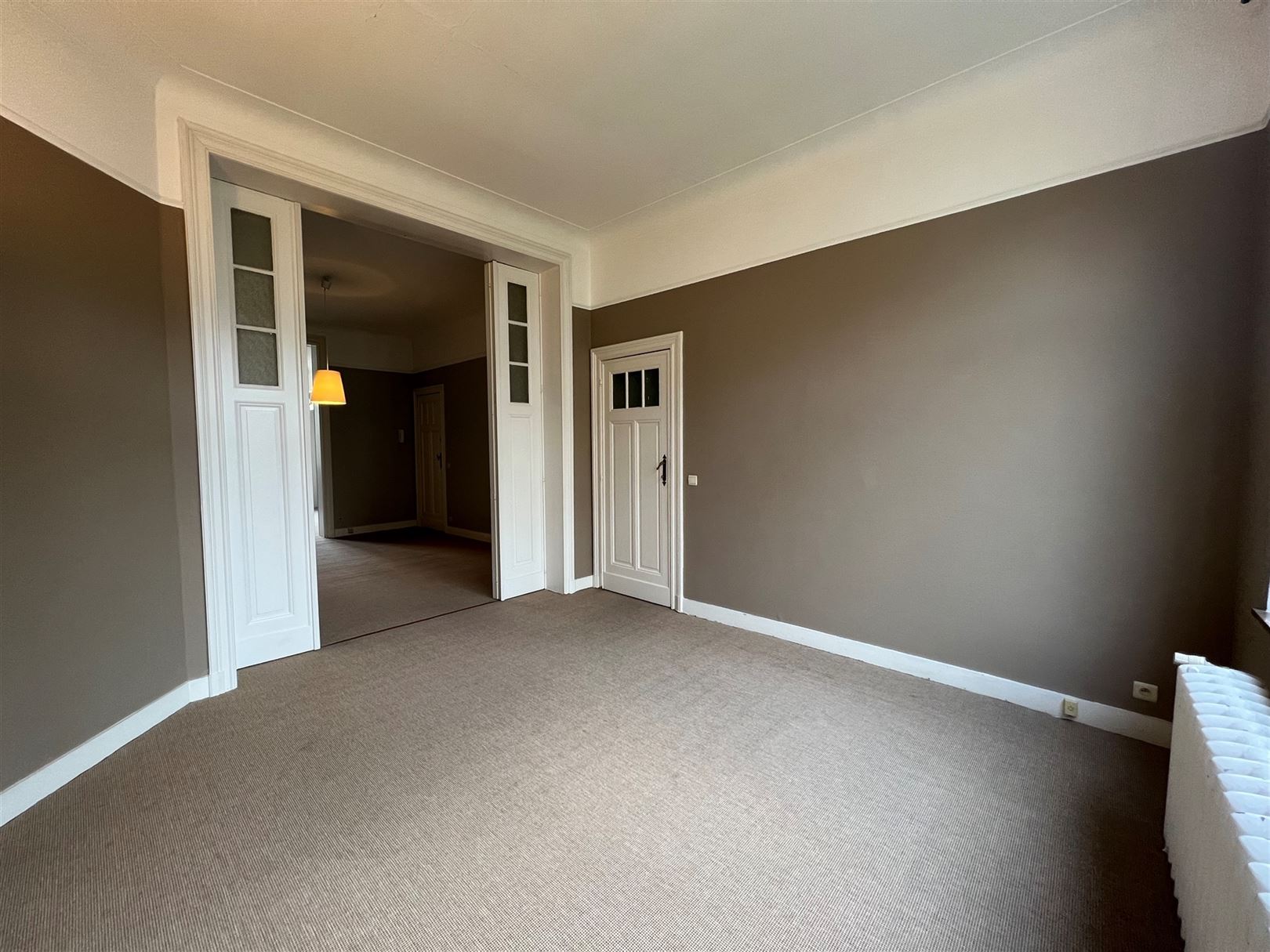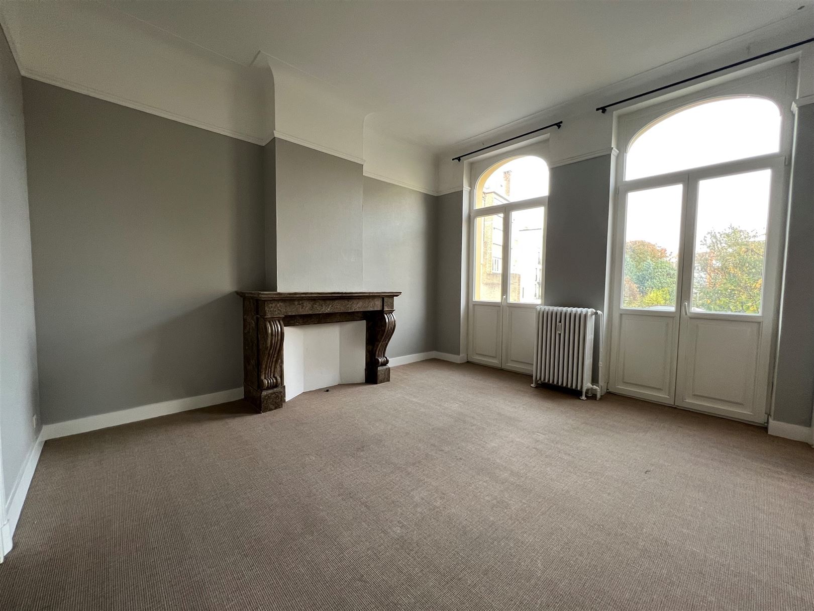Ixelles - Between avenue Molière and Place Brugmann, located on the 1st floor of a building from the beginning of 1900, a beautiful renovated one-bedroom apartment of +/- 85 m2. The living room of +/- 30 m2 is spread over 2 adjoining rooms with decorative chimney and high ceilings - Separate fully equipped kitchen - A large bedroom overlooking the garden - Dressing room - Bathroom and laundry room on the mezzanine floor - Wooden double-glazed frames - New gas central heating (mid-April 2023) - A cellar - Comfortable, bright and warm in one of the most pleasant areas of our capital - Low charges Energetic Cat. : F