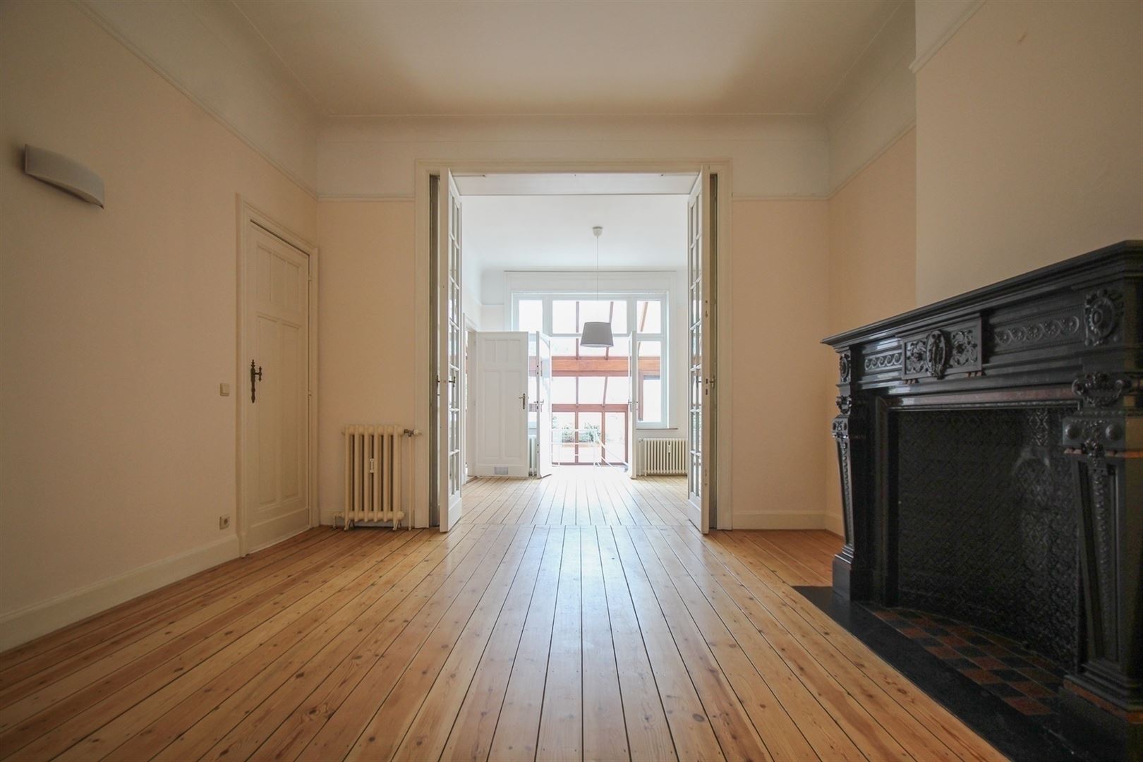 In the magnificent Molière / Brugmann area, a ground floor apartment with garden and South West terrace of +/- 135 m2 - Large living room with 3 adjoining rooms with high ceilings and old floorboards, embellished with very beautiful decorative fireplaces. The generosity of the living room offers the convenience of a second bedroom (+/-18m2). On the garden side, the living room ends with a veranda and a separate fully equipped kitchen with access to the garden/terrace. On the lower level, a large bedroom with very bright office space under the veranda - Dressing room - Italian shower room - beautiful contemporary design - Laundry and storage space - Wine cellar - PEB: F - Low building charges - New gas central boiler (April 2023) - Wooden double glazing - A character property in one of the nicest Brussels area - Free at the Act of sale. .