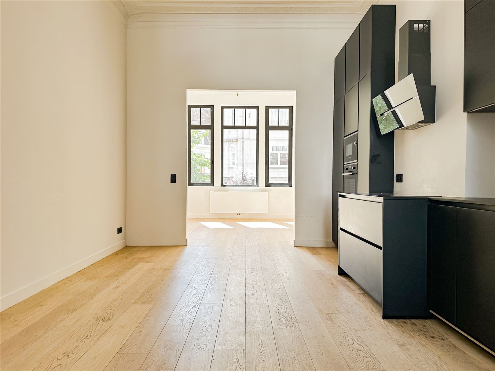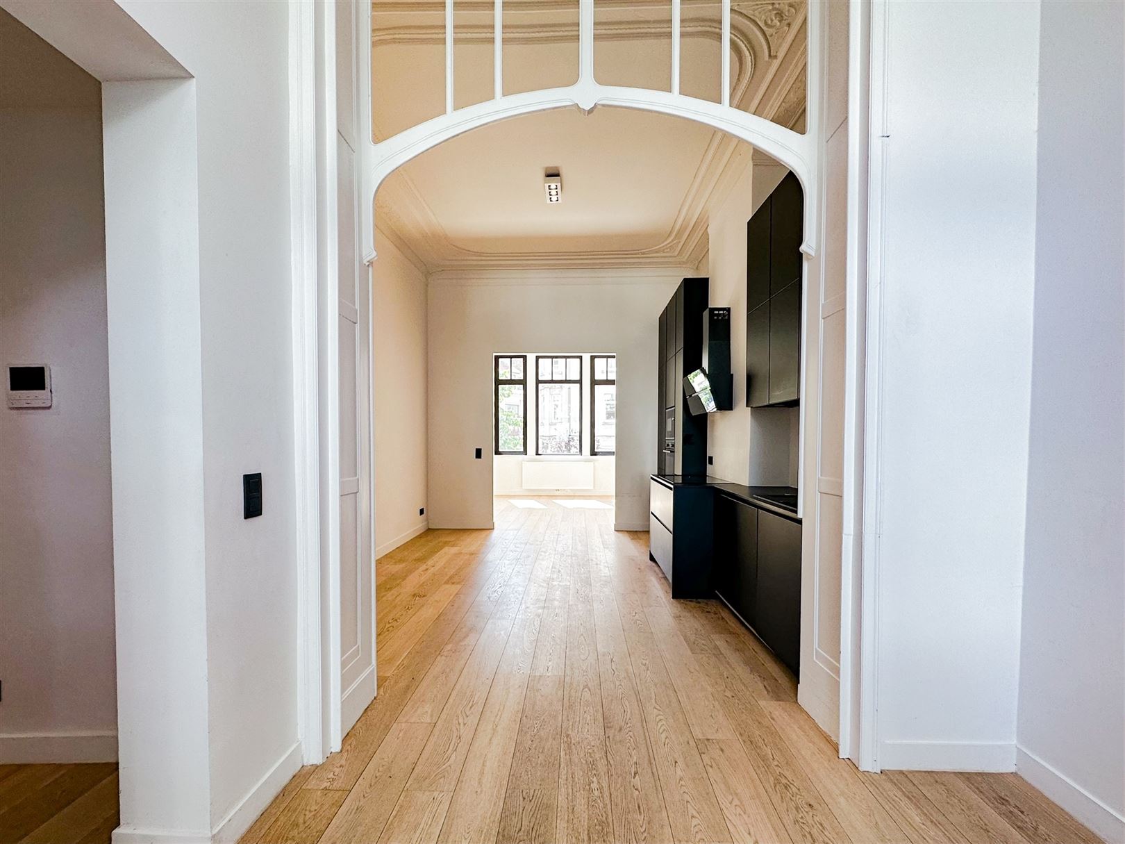 Near the European Parliament - Rue du Sceptre - A magnificent flat of +/-100 m2 with garden, renovated in a beautiful Art Nouveau building - Combining character and modernity - 2 bedrooms -1 shower room - Large living room of +/- 40 m2 with fully equipped kitchen - High ceilings - Solid wood floors - Decorative fireplaces Very bright and quiet - EPB : E