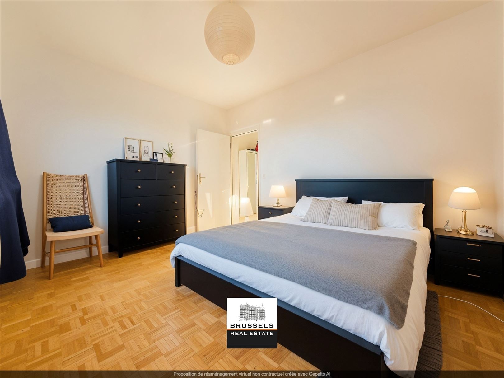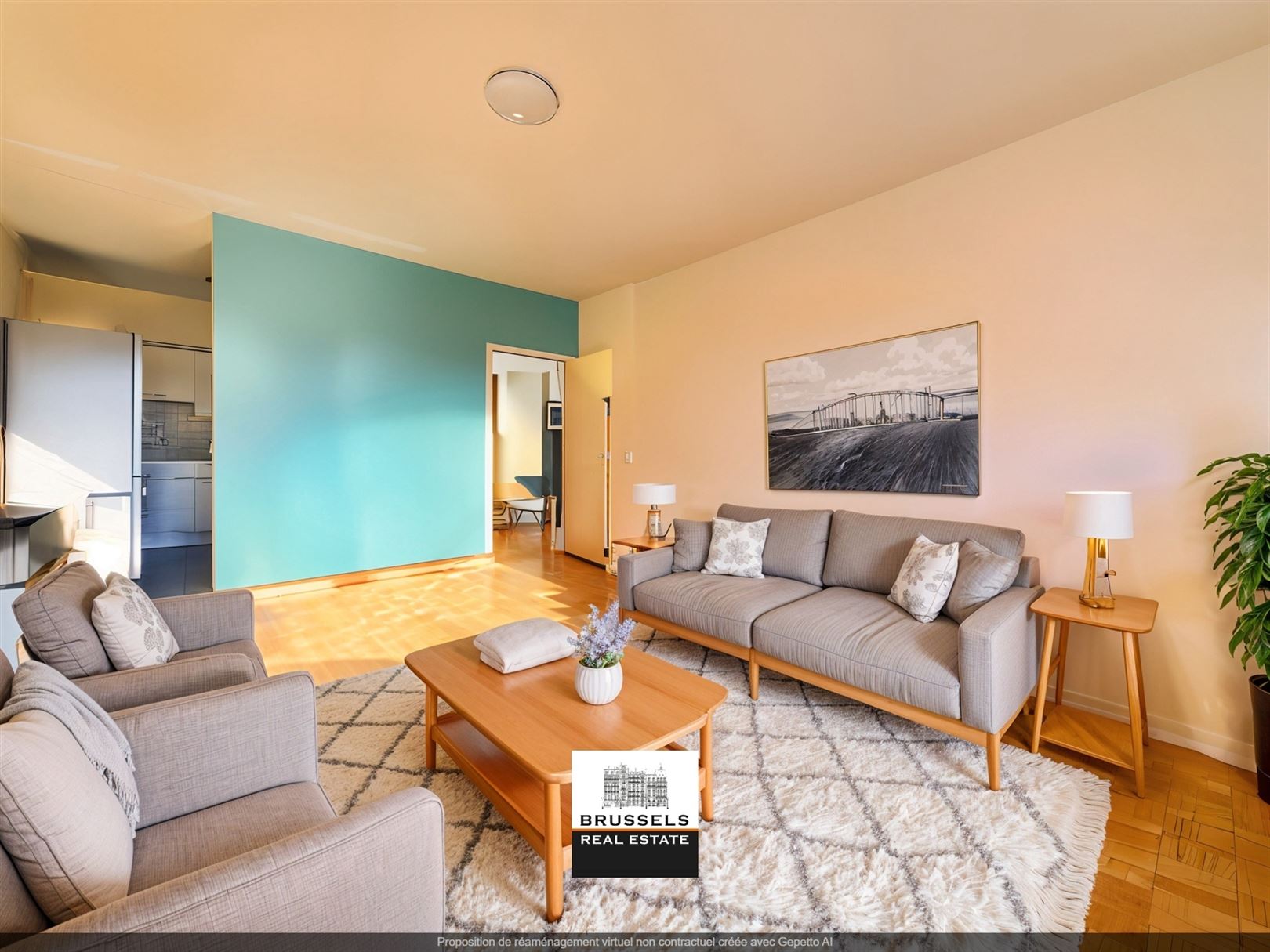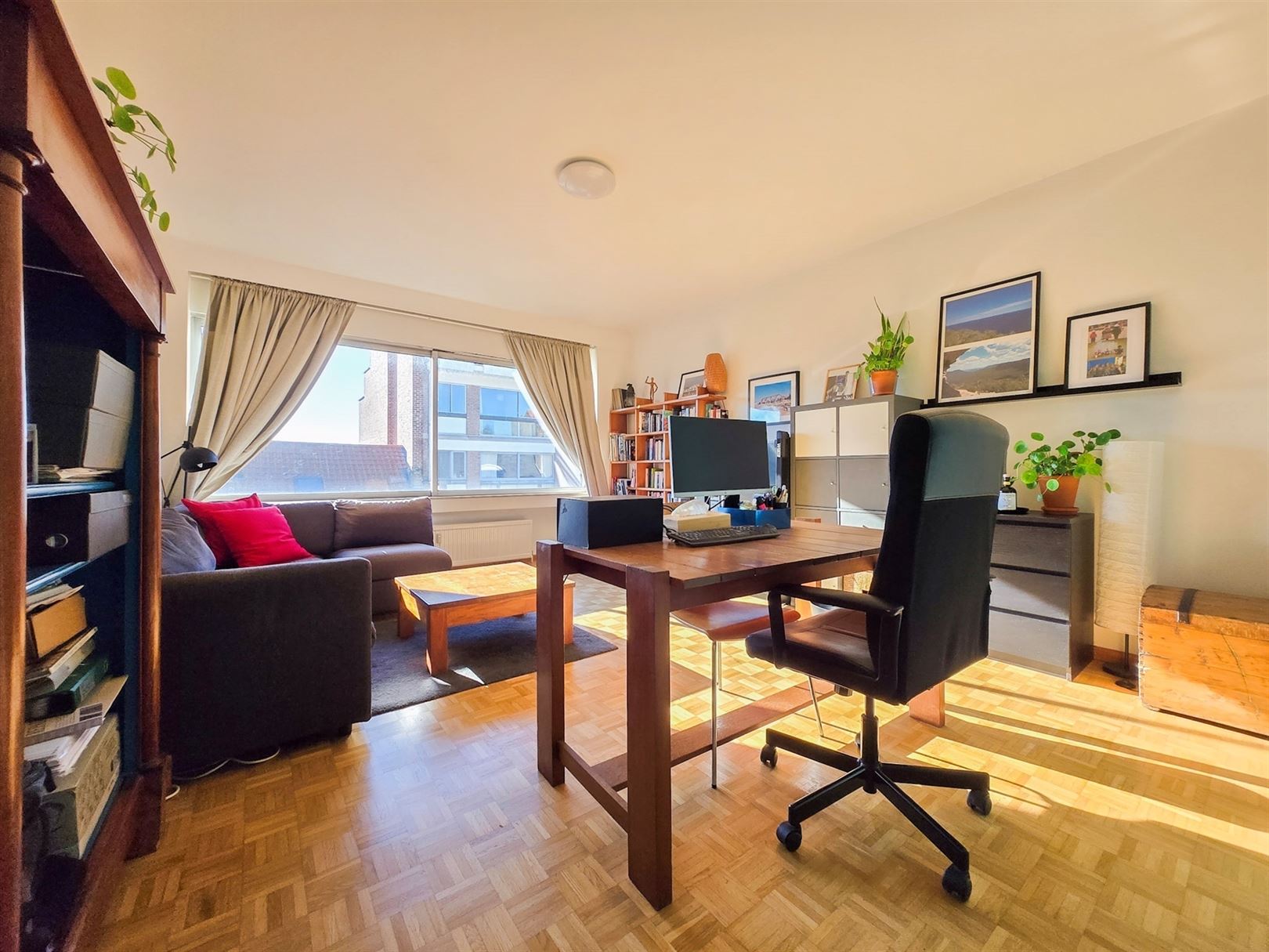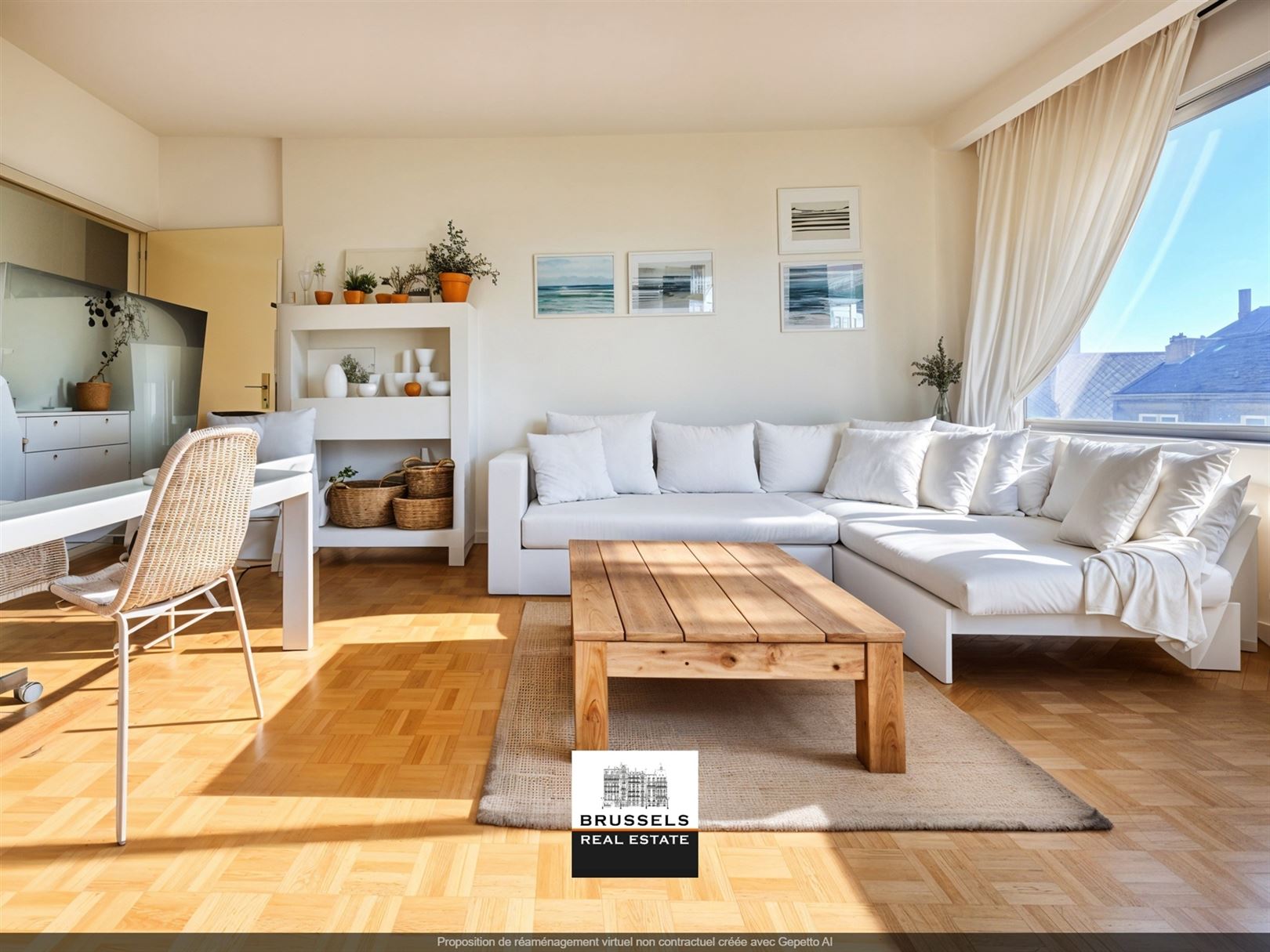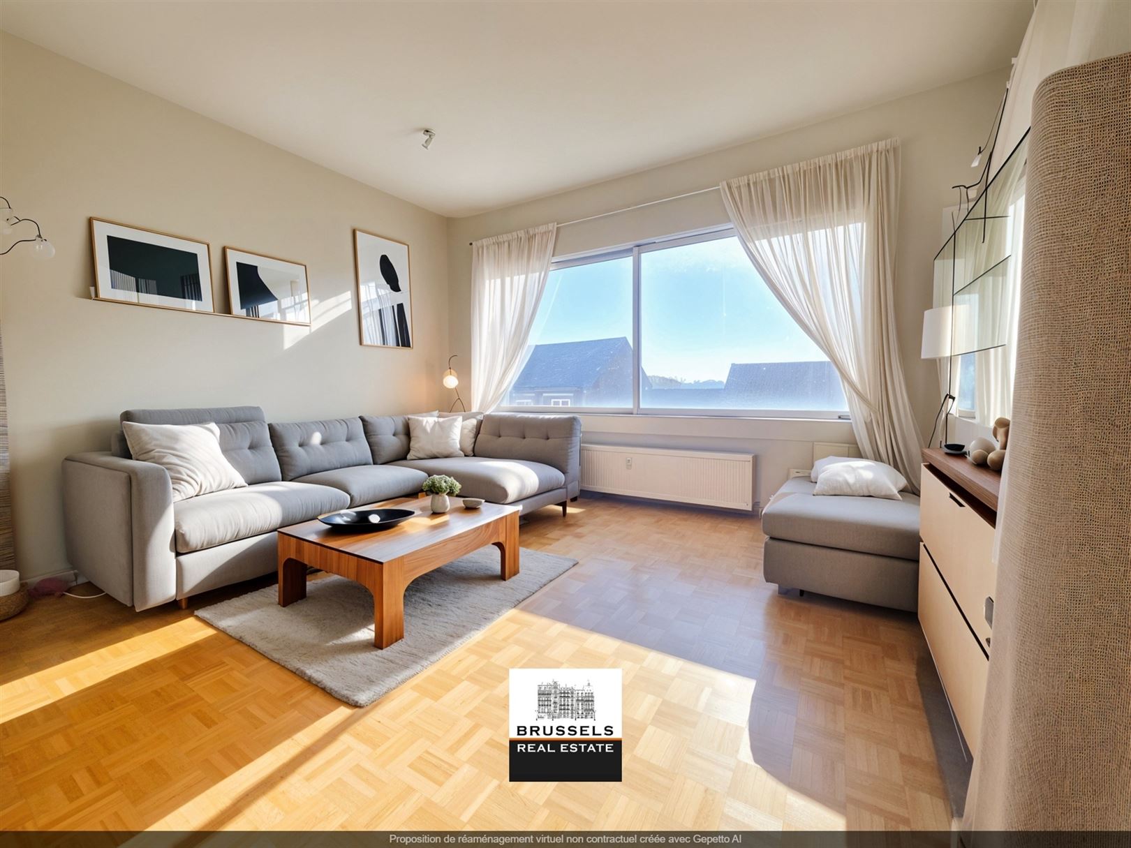Uccle -Close to Parvis-st-Pierre the commercial center - Charming one-bedroom flat +/- 65 m2 - Spacious entrance hall with cloakroom, built-in cupboards and toilet - Very bright living room divided between lounge and dining room - Original solid oak parquet flooring in good condition - Separate, semi-fitted kitchen. The layout of the entrance hall, living room and kitchen offers the possibility of converting it into an open-plan kitchen and extending the living room, as the dividing wall is not load-bearing - Bedroom : +/- 14m2 - Bathroom with space for a washing machine. Cellar +/- 3m2 - PEB E. electricity in conformity. Co-generation system being installed by June 2025. Information and visits on +32.0470.070.184.Please place your offer from 209.000 €