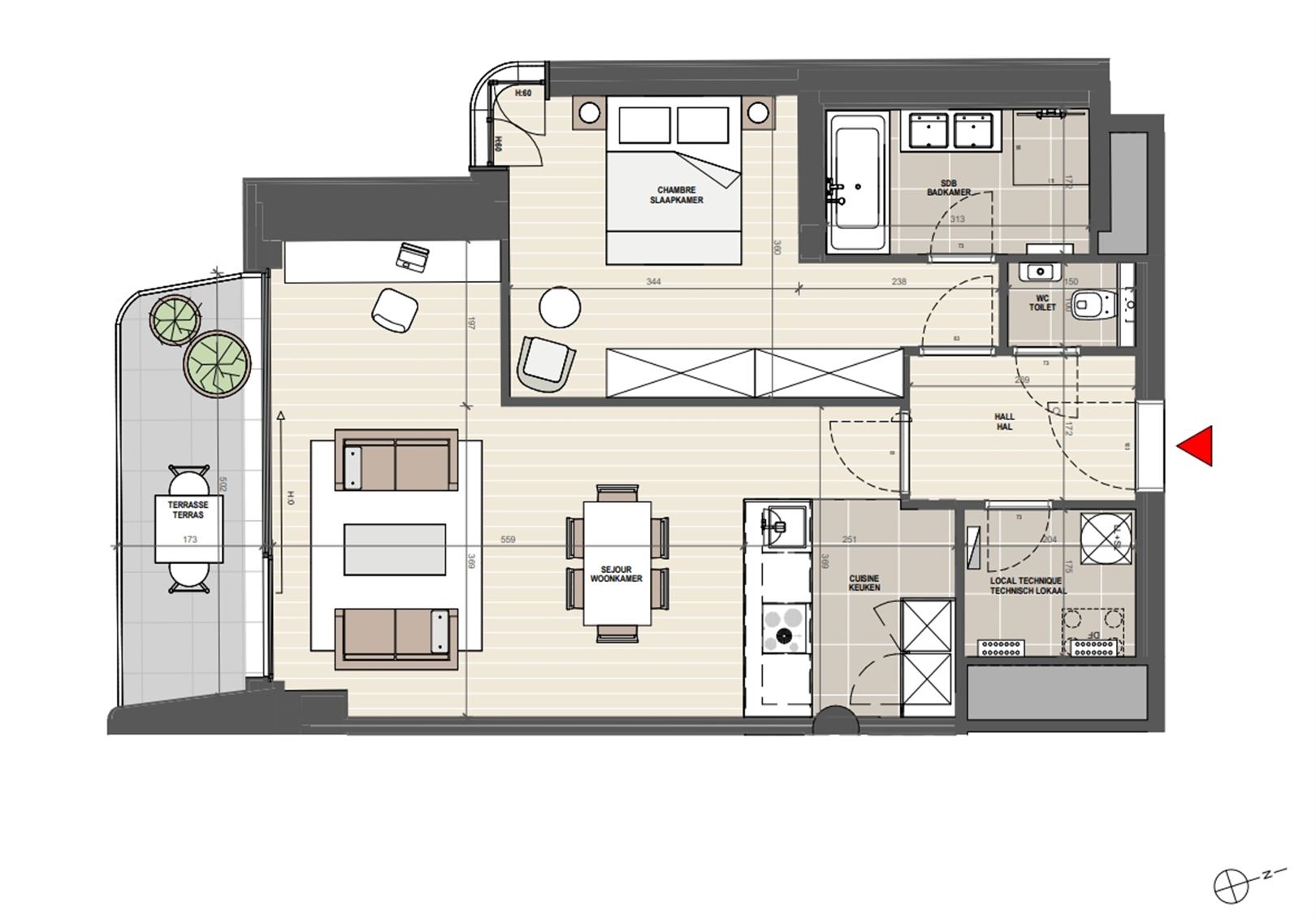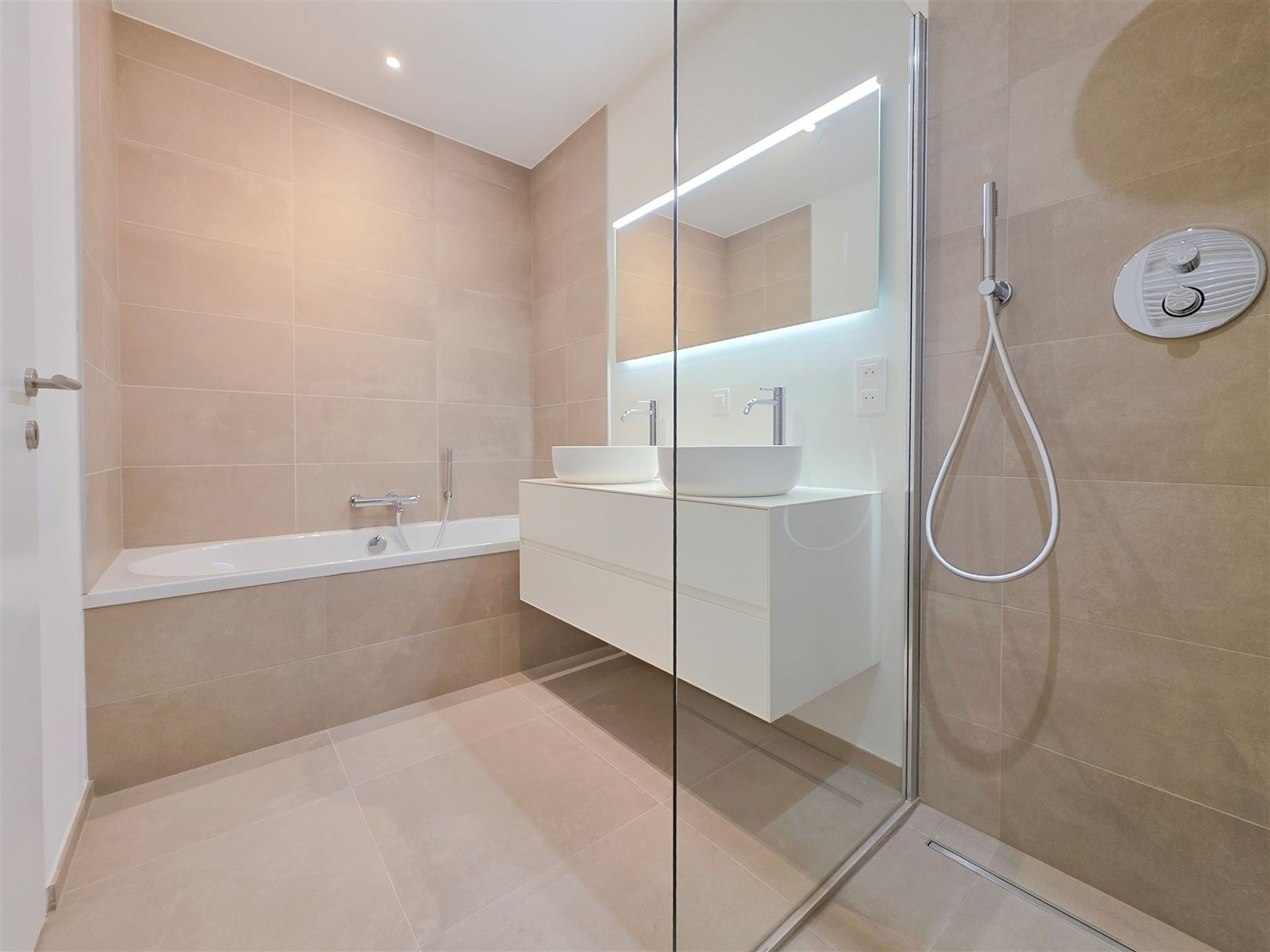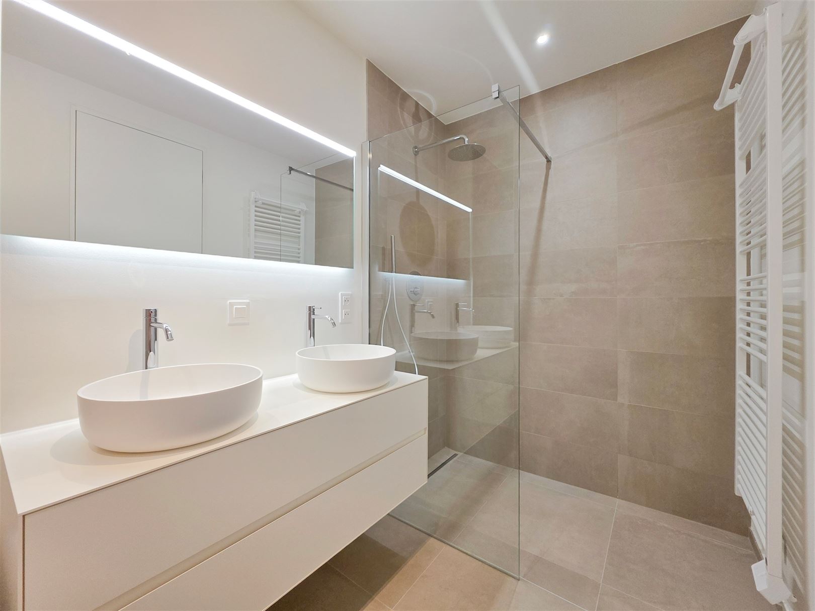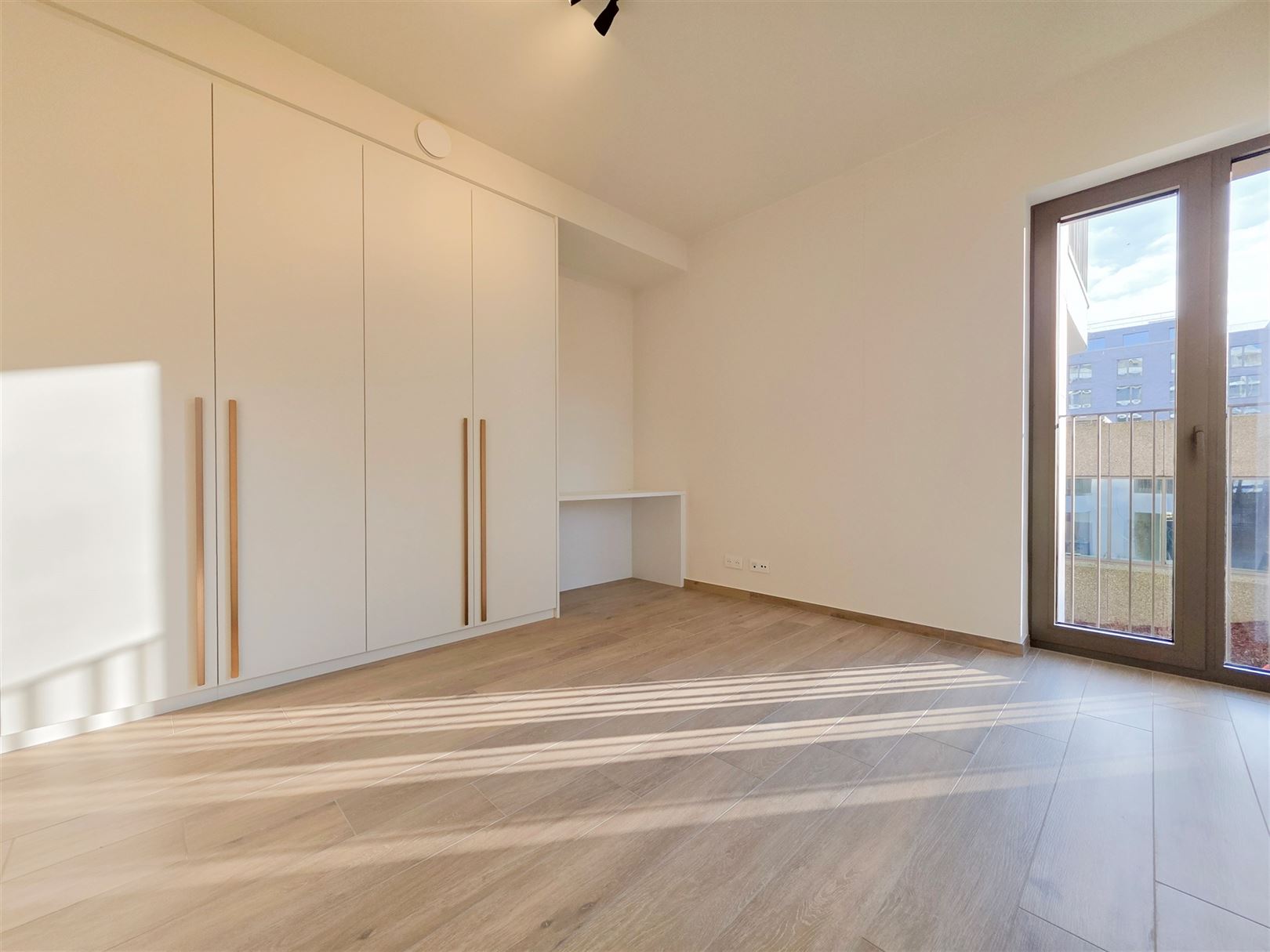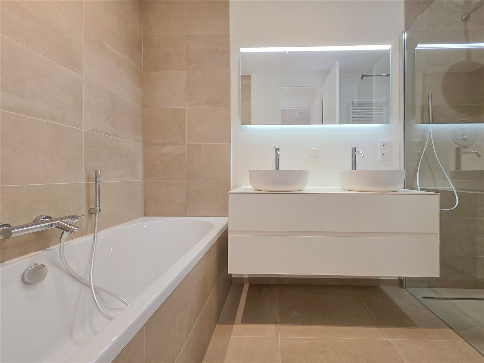 Montgomery- Parc de Woluwe and close to the European Community - A magnificent new apartment on the 1st floor with a surface area of +/- 80 m² comprising 1 bedroom with desk area and triple built-in wardrobe - a bright living room with super-equipped kitchen (Siemens technology) - a sunny terrace of +/- 8 m² - a spacious entrance hall with cloakroom - a comfortable bathroom (claw-foot bath, double washbasin and Italian shower) - separate toilet - private laundry room - cellar of +/- 5 m² - parking space and bicycle. The property is equipped with home automation, underfloor heating and cooling, individual double-flow ventilation, secure entrance doors, smart lockers for parcel delivery and a building design that provides acoustic and vibration insulation. Provision of charges €120 (common services and private heating -hot water). Parking space : 150 €. EPB A. Immediate availability. Informations and visits - Brussels Real Estate & Properties - +32.470.070.184