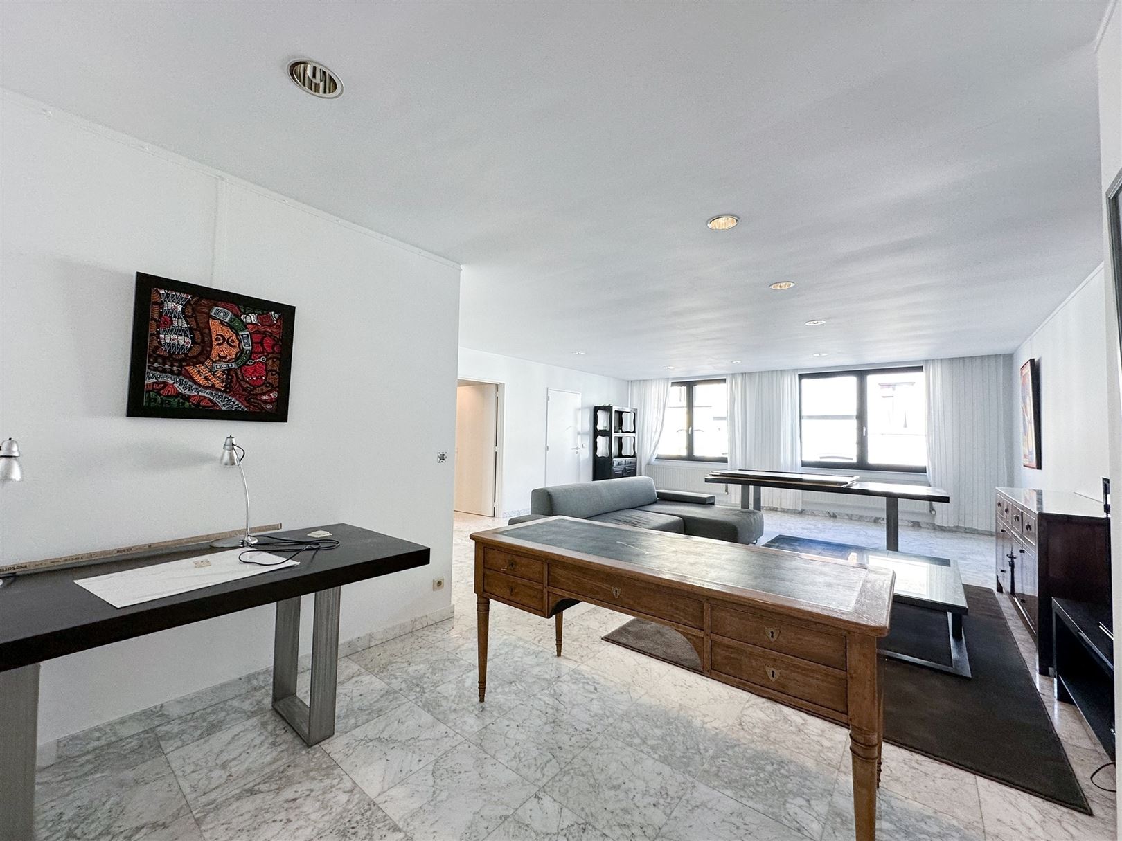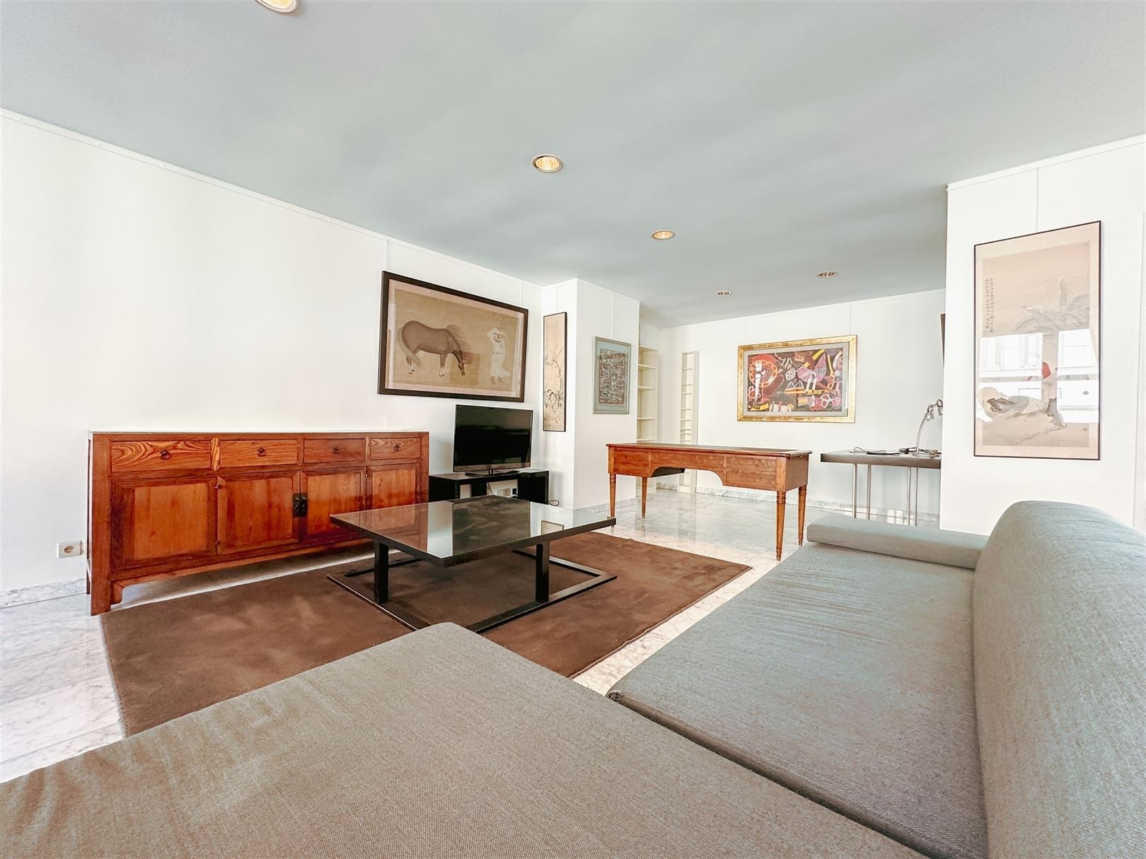 Close to Place Jourdan and the European Parliament, spacious 130 m² furnished apartment comprising a bright 50 m² living room with office area, separate fully-equipped kitchen, two large 20 m² bedrooms with dressing rooms, bathroom with double basin, two separate toilets, cellar. Immediate availability. EPB- C.
