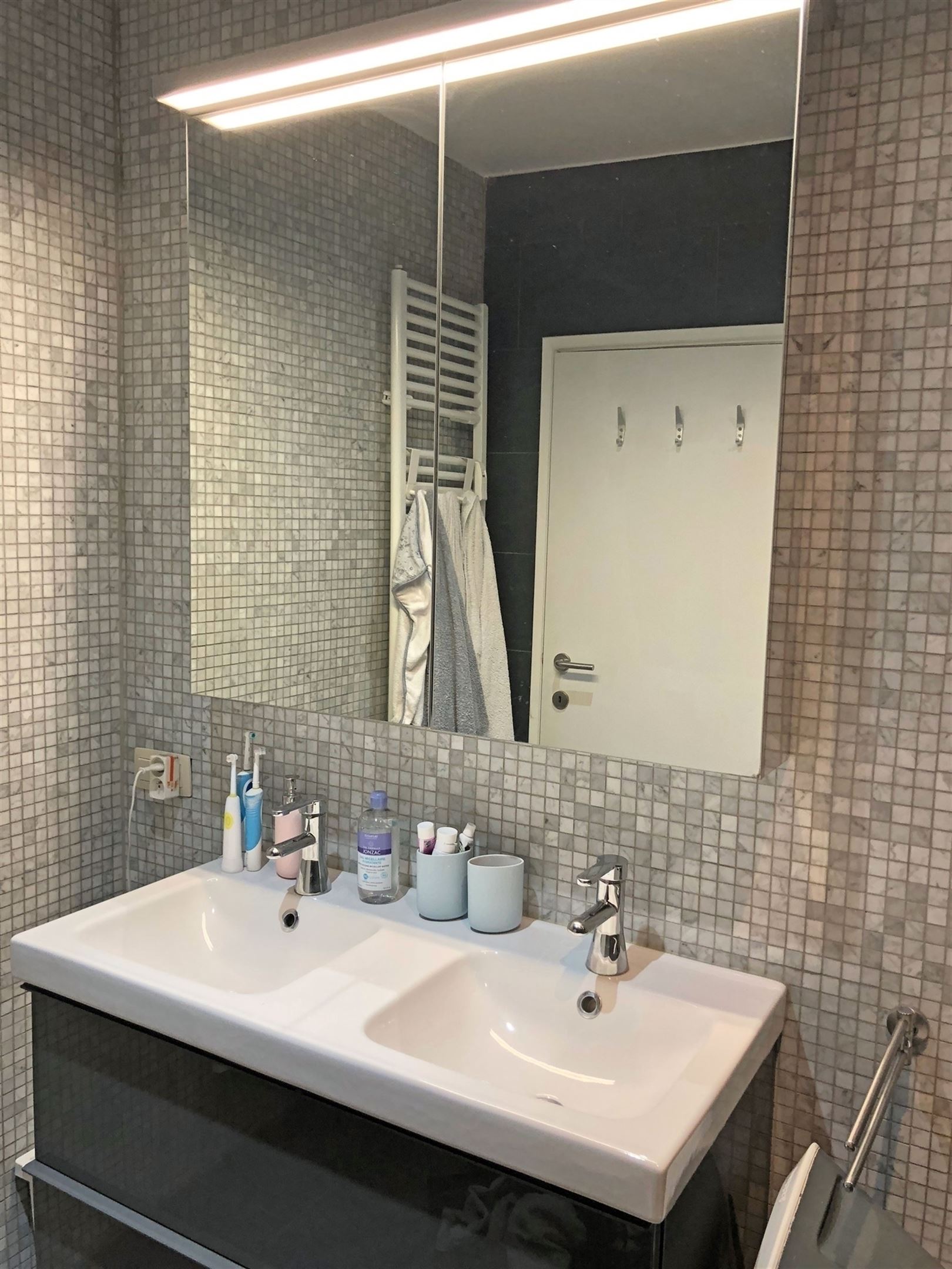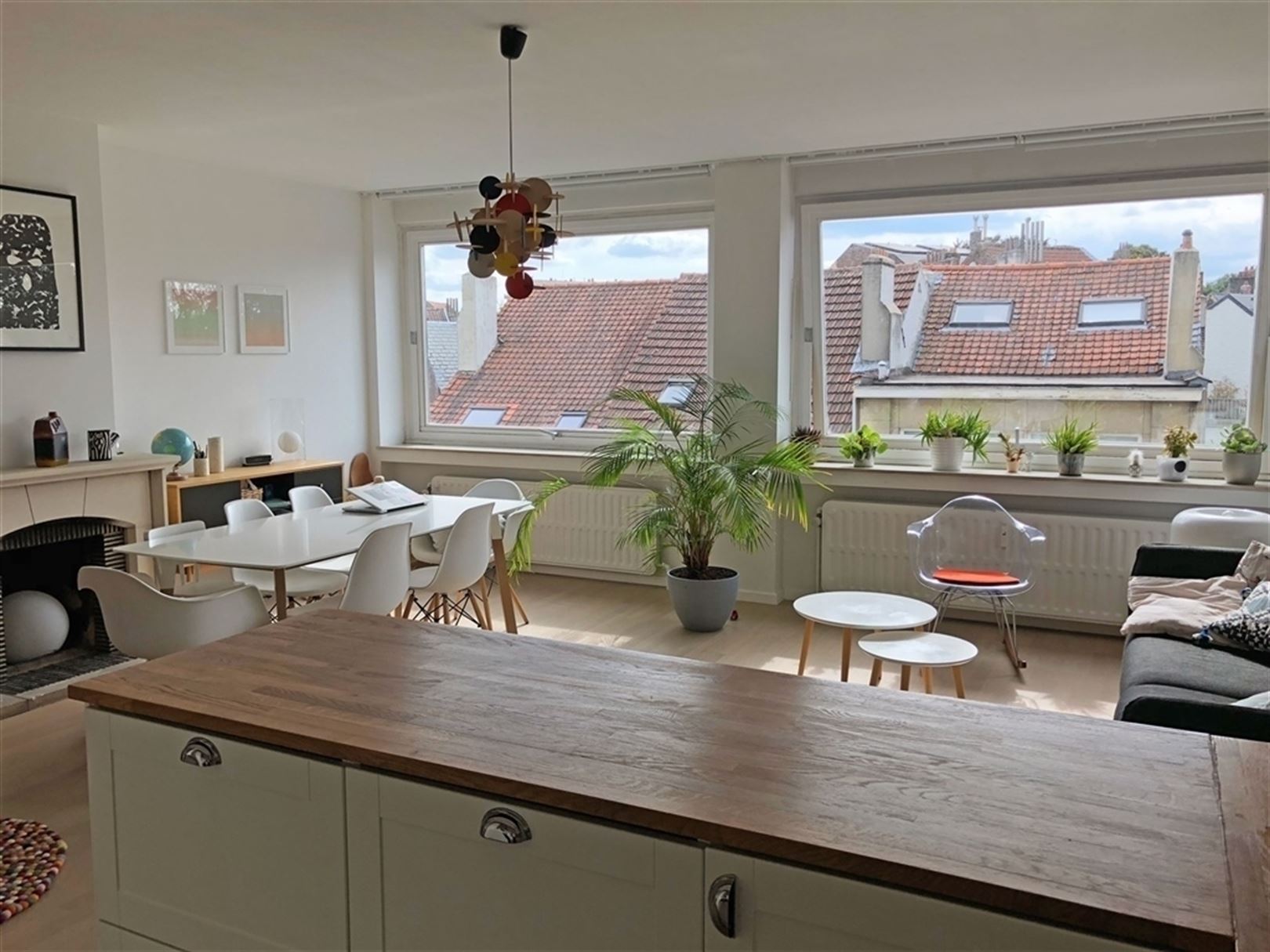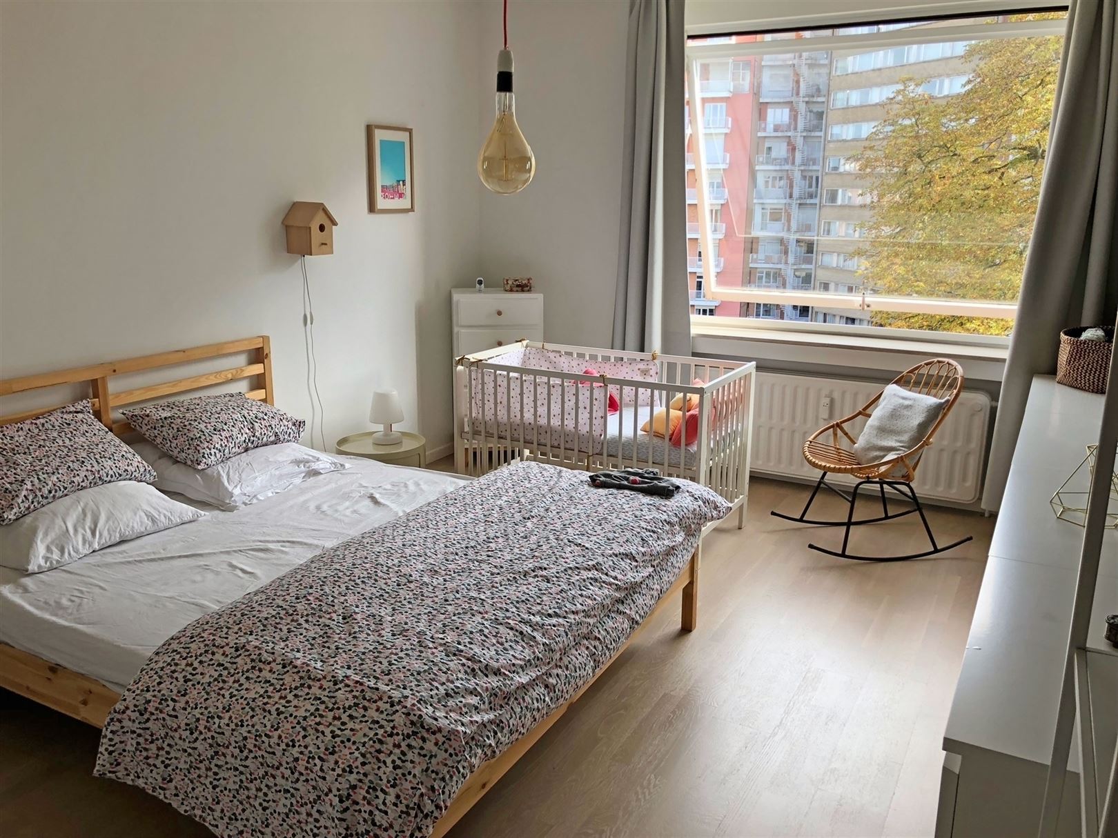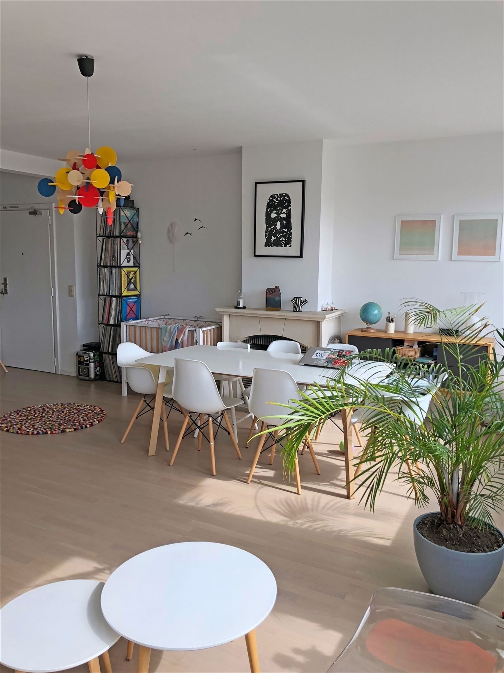 Châtelain area, a beautiful 2-bedroom flat of +/- 110 m2 located on the 5th floor with elevator - spacious, very bright living room facing south-west with an unobstructed view over the rooftops - Contemporary oak flooring - Super-equipped open-plan kitchen - Entrance hall & night hall - 2 large bedrooms at the rear of the building and in a quiet location - Bathroom – laundry room - Balcony at the rear - Provision of charges 180 €: cold/hot water, heating and maintenance of common areas - PEB = D. Available from 15.09.2025