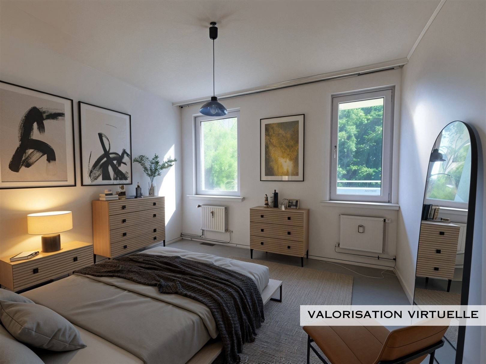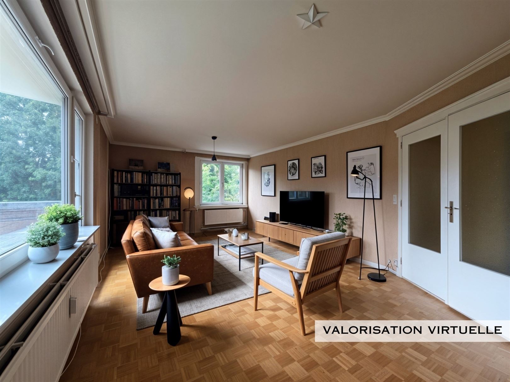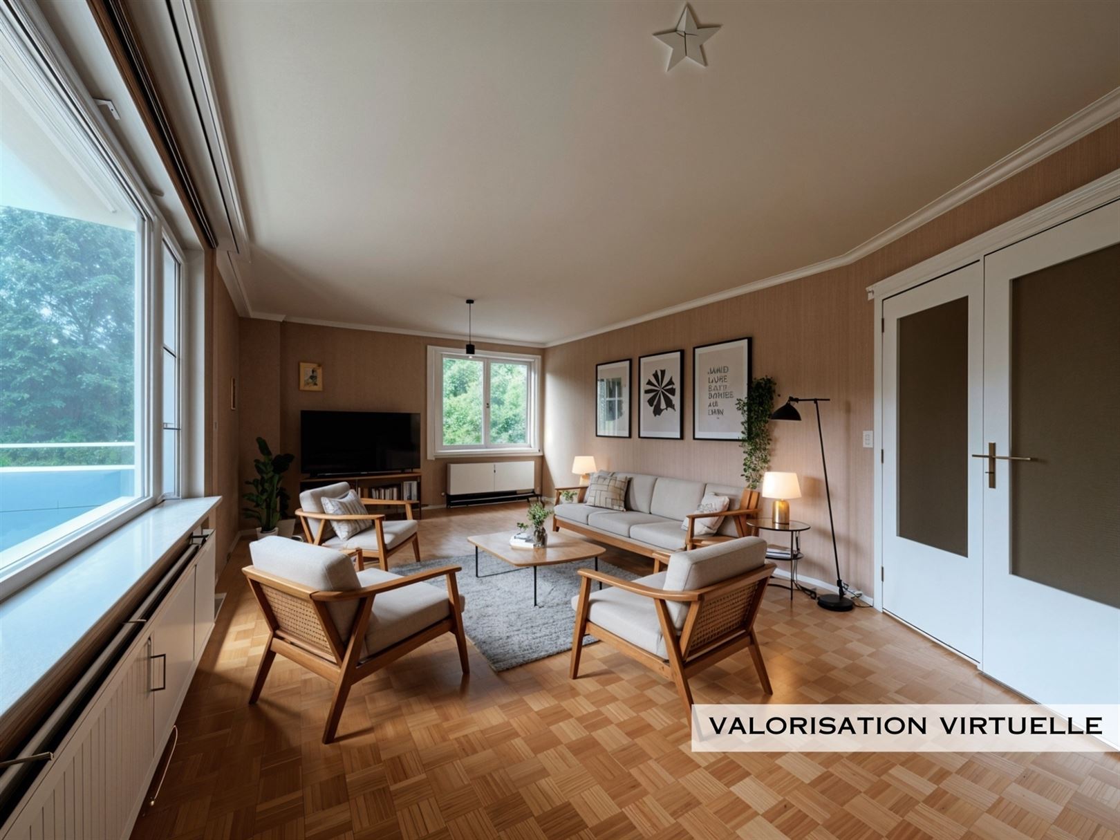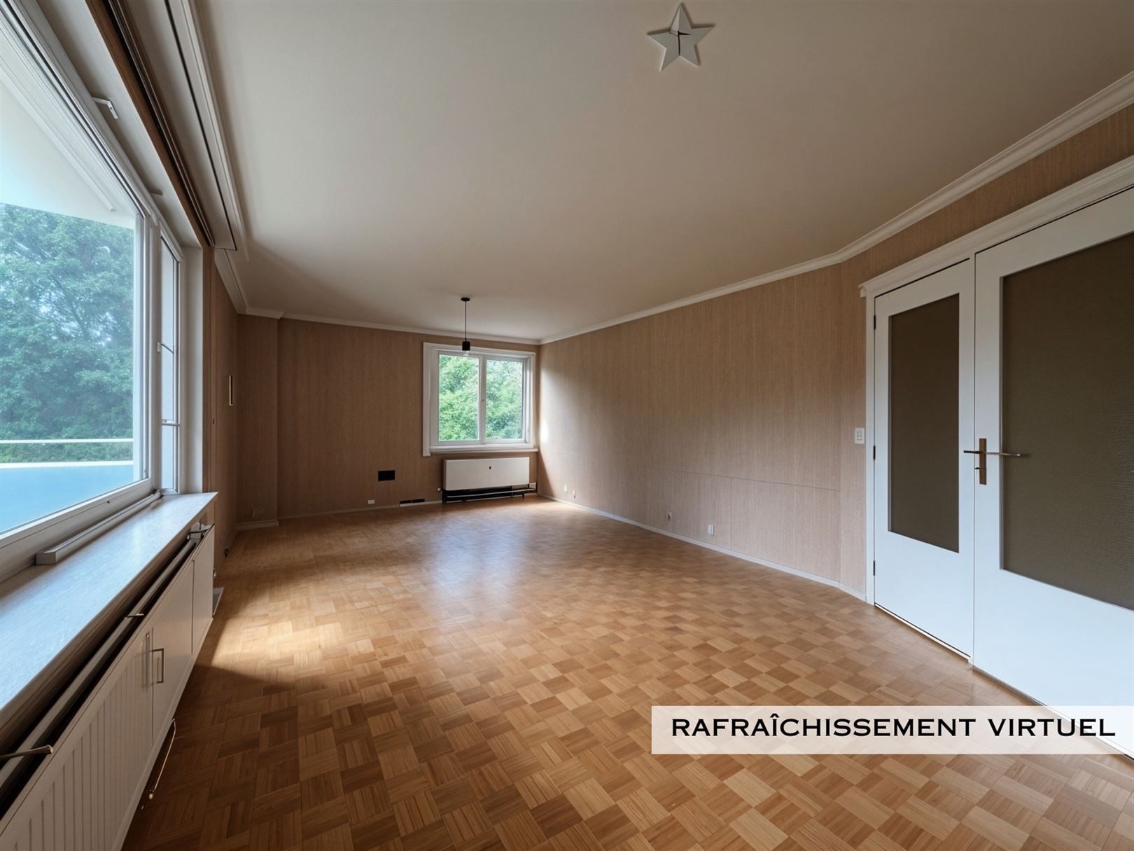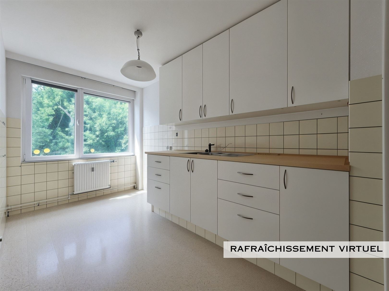 Anderlecht - Peaceful neighbourhood within Scherdemael Park - Do not miss - Very nice 3 bedroom apartment to renovate -Spacious and bright apartment of ± 95 m² comprising: entrance hall with cloakroom, living room with terrace and green views, separate kitchen, hallway, 3 bedrooms (± 13 m², ± 10 m² and ± 9 m²), bathroom, separate toilet. Cellar -1. Bike storage room. PEB: D. Wooded landscape, quiet environment and close to amenities. Elevators up to standard - Central heating boiler 2021 - Roof renovation and insulation in 2024. Co-ownership charges (syndic, maintenance, reserve fund, etc.): +/- 200€/month /\ The photos include virtual homestaging Description for information purposes only and not contractually binding