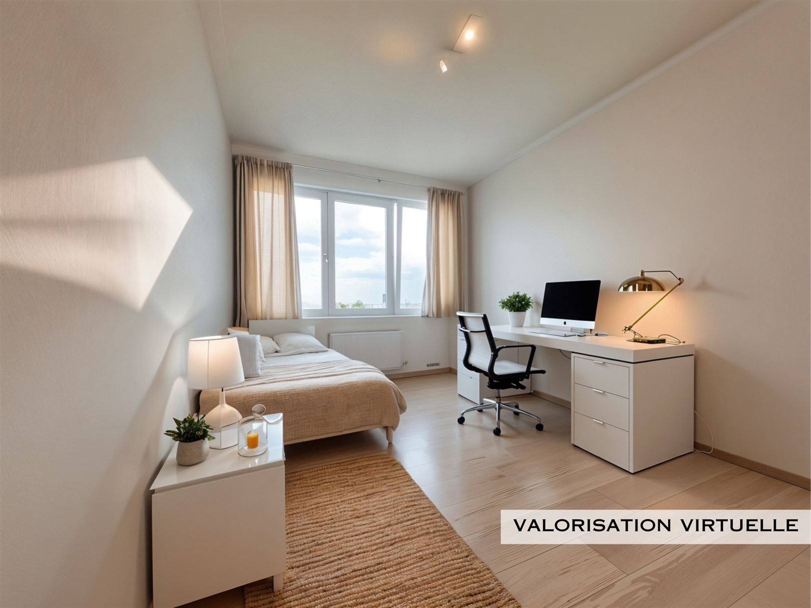 Anderlecht - Peaceful neighbourhood within Scherdemael Park - Charming apartment of ± 85 m² comprising: entrance hall with cloakroom, bright living room with green views, semi-equipped separate kitchen, hallway, 2 bedrooms (± 15 m² and 12 m²), shower room, separate toilet. Cellar -1 - Bicycle room - PEB: E+. Wooded landscape, quiet environment and close to amenities. Elevators up to standard - Central heating boiler 2021 - Roof renovation and insulation in 2024. Co-ownership charges (syndic, common services, etc.): +/- 200€/month /\ The photos include virtual homestaging
