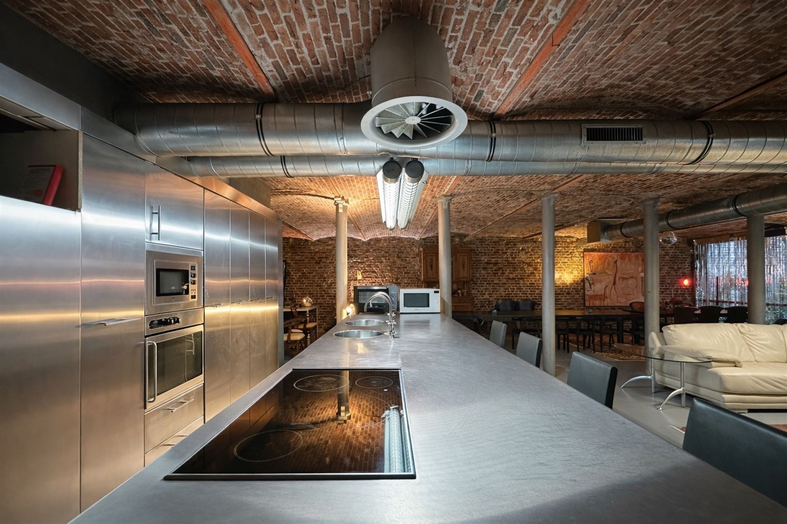 Located in the heart of Brussels, in a former cooperage that has been converted into an investment property, this loft boasts a surface area of +/- 400 m² spread over two levels. Currently used as an office, this property offers exceptional potential for multiple uses, whether as an atypical home, a mixed-use space or a professional activity. Its perfectly preserved industrial character is immediately appealing, with exposed brick vaults, metal structures and columns giving the building a strong identity. The generous, open-plan layout features a vast living room with a fully-equipped open kitchen in professional stainless steel style, a bar area, several reception and relaxation areas, a fitted sleeping area, as well as a bathroom and sauna area in the basement. The property also benefits from a pleasant patio, bringing light and comfort to everyday life. New boiler - PEB C-, compliant electricity- two parking spaces at €30,000 for both as well as two independent entrances, offering additional flexibility in the use of the property.📞 Brussels Real Estate & Properties - 02/534.24.52 📧 info@brusselsrealestate.eu