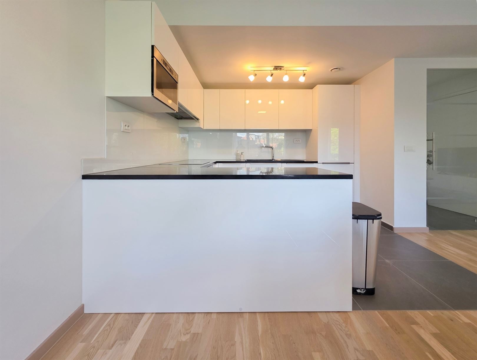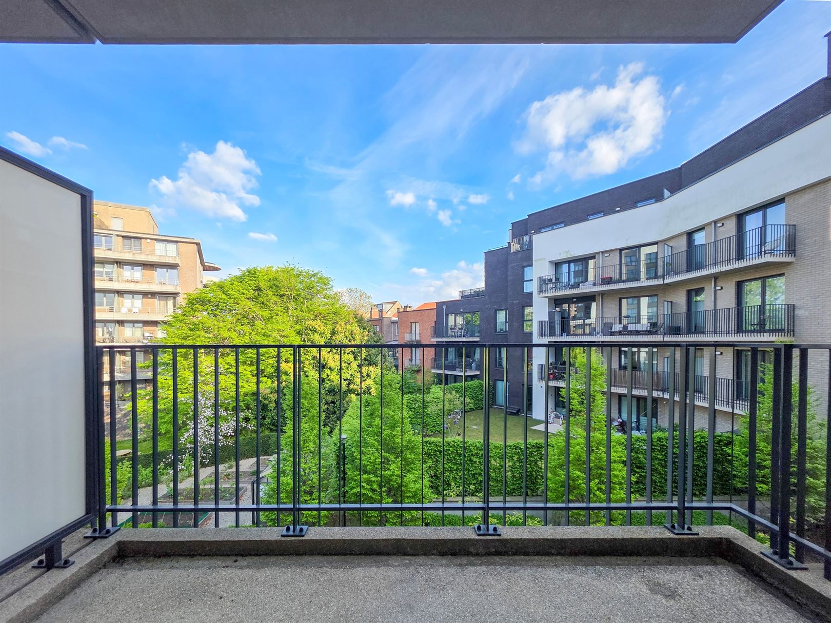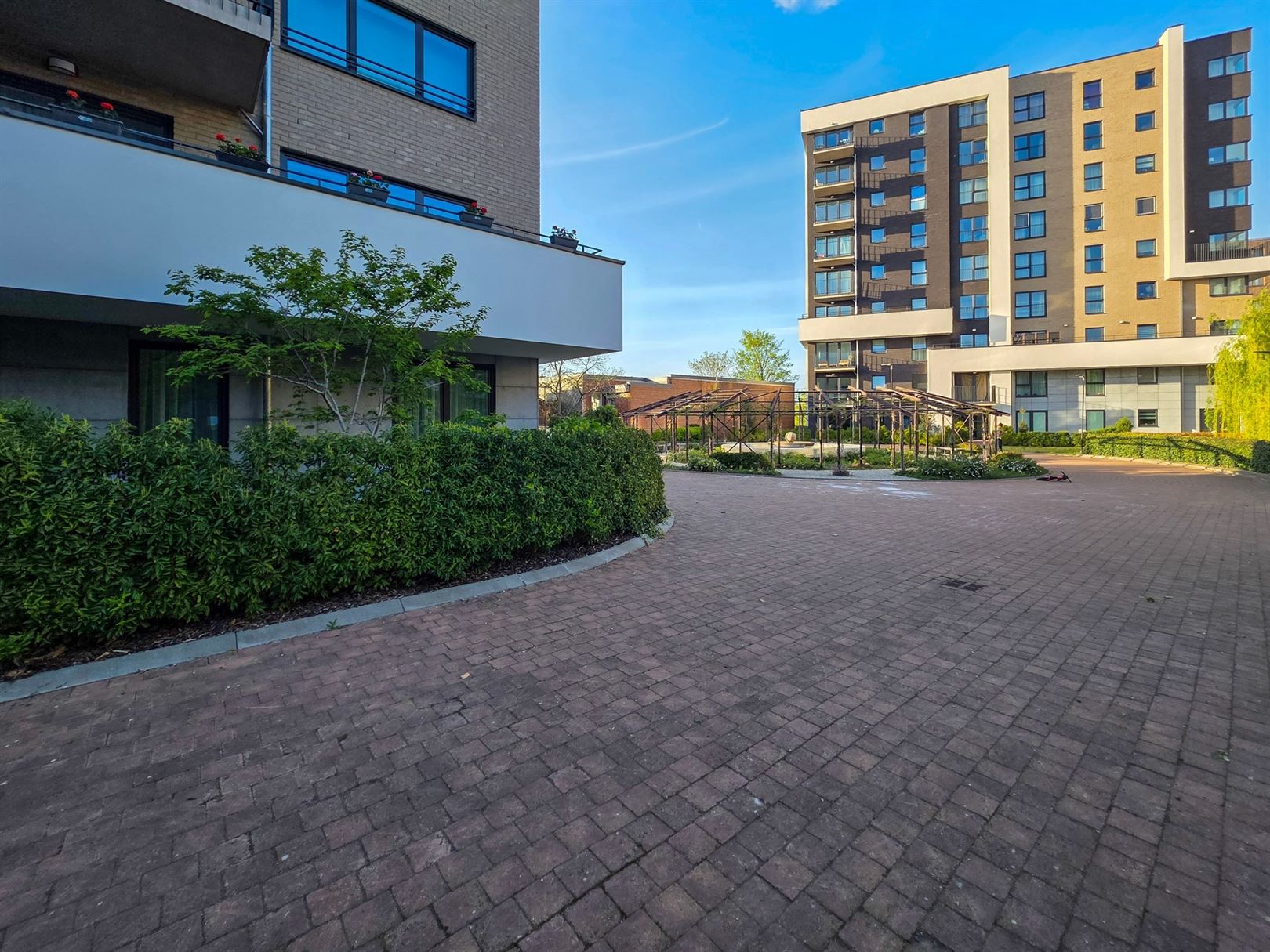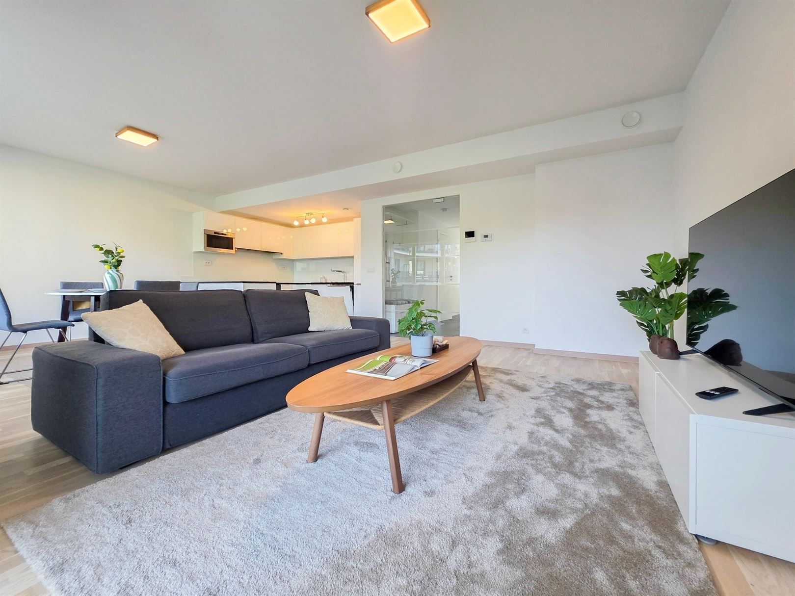 EVERE - Close to NATO – Within a private residential enclave - Beautiful furnished apartment with terrace composed as follows: Entrance hall – Bright living room with access to a pleasant south-east facing terrace - High-end, fully equipped kitchen – Spacious bedroom +/- 15 sqm with built-in wardrobe – second bedroom or office +/- 10 sqm – Bathroom with separate shower –Equipped laundry room – Cellar - Parking space available for 100 €. Key features: EPC A – Double-flow ventilation system (Zehnder) – Individual gas heating (Bulex) – Videophone – Reinforced security door – Access control system – Private communal garden. Provision for common charges: 150€/month. Individual charges: electricity, heating, water and liability insurance. (This description is provided for information purposes only and is non-contractual.)