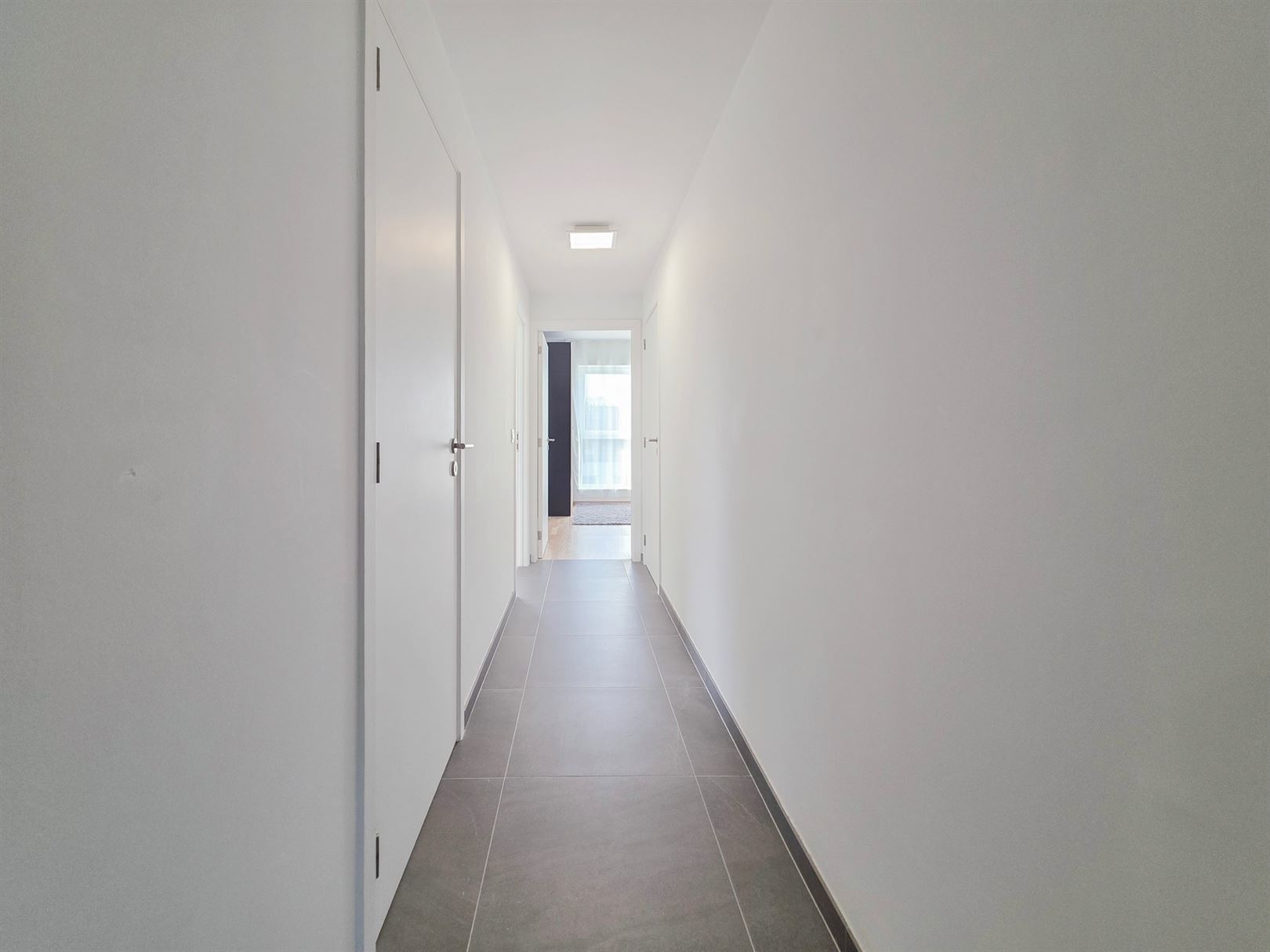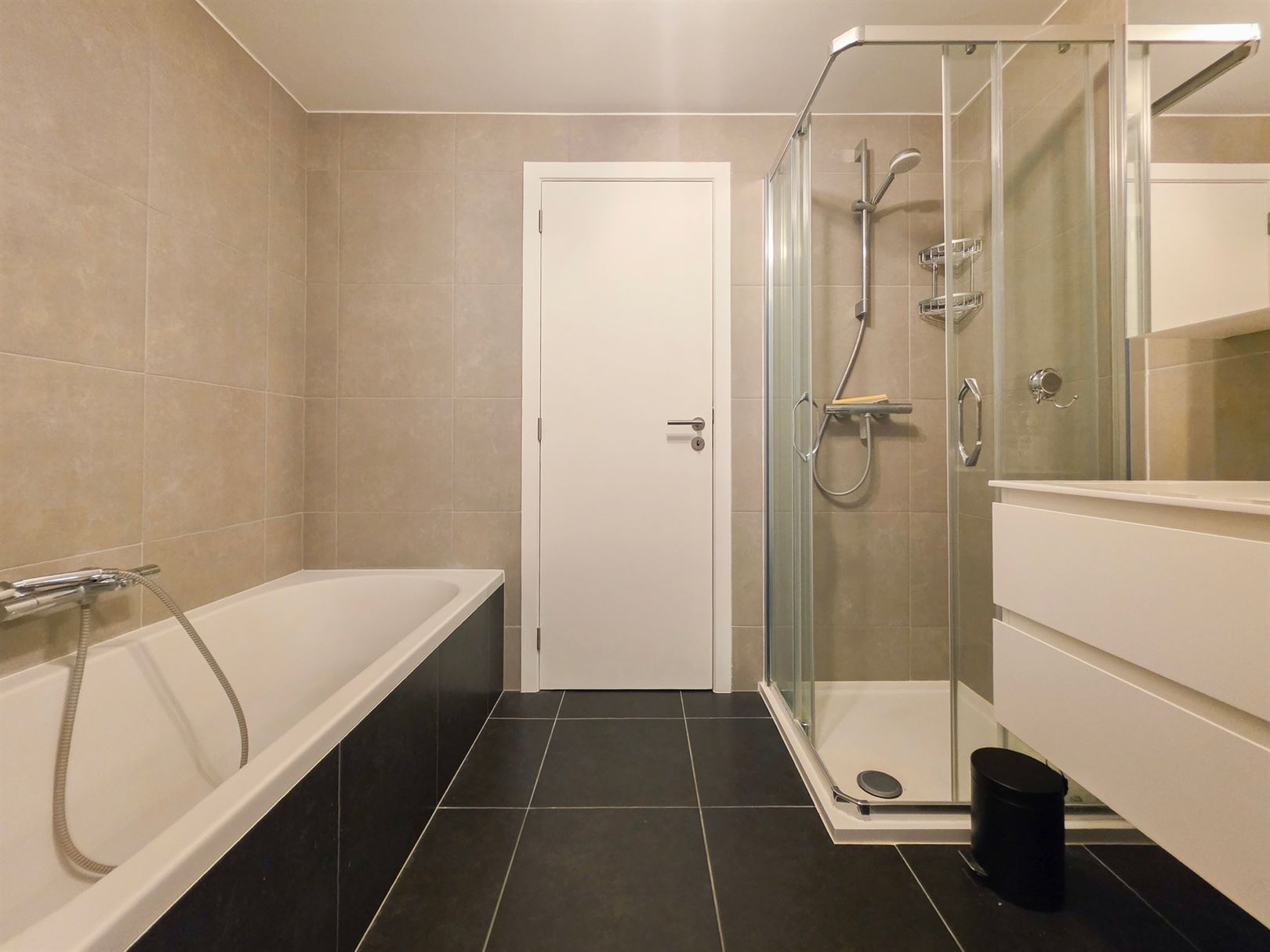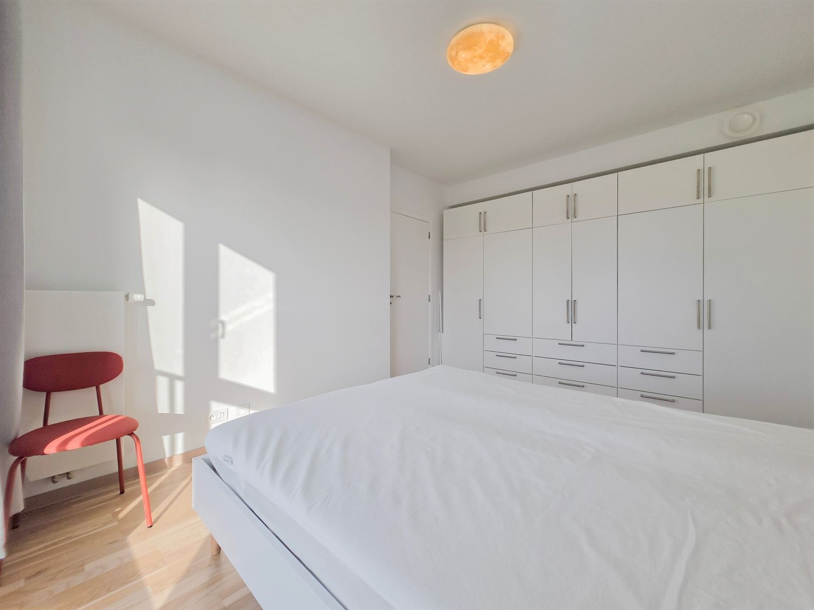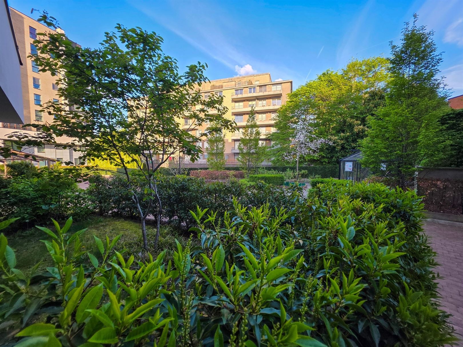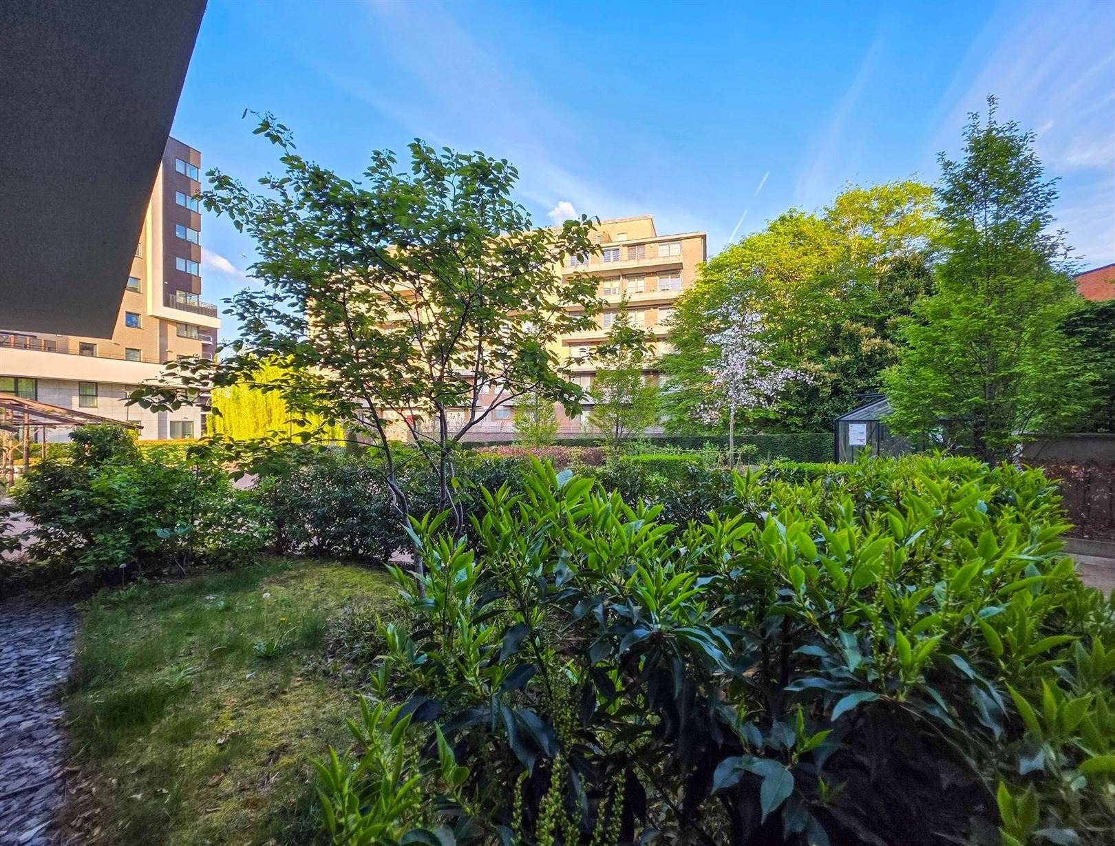 EVERE - Close to NATO – Within a private residential enclave - Beautiful furnished apartment with terrace composed as follows: Entrance hall – Bright living room with access to a pleasant south-east facing terrace - High-end, fully equipped kitchen – Spacious bedroom +/- 15 sqm with built-in wardrobe – second bedroom or office +/- 10 sqm – Bathroom with separate shower –Equipped laundry room – Cellar - Parking space available for 100 €. Key features: EPC A – Double-flow ventilation system (Zehnder) – Individual gas heating (Bulex) – Videophone – Reinforced security door – Access control system – Private communal garden. Provision for common charges: 150€/month. Individual charges: electricity, heating, water and liability insurance. (This description is provided for information purposes only and is non-contractual.)