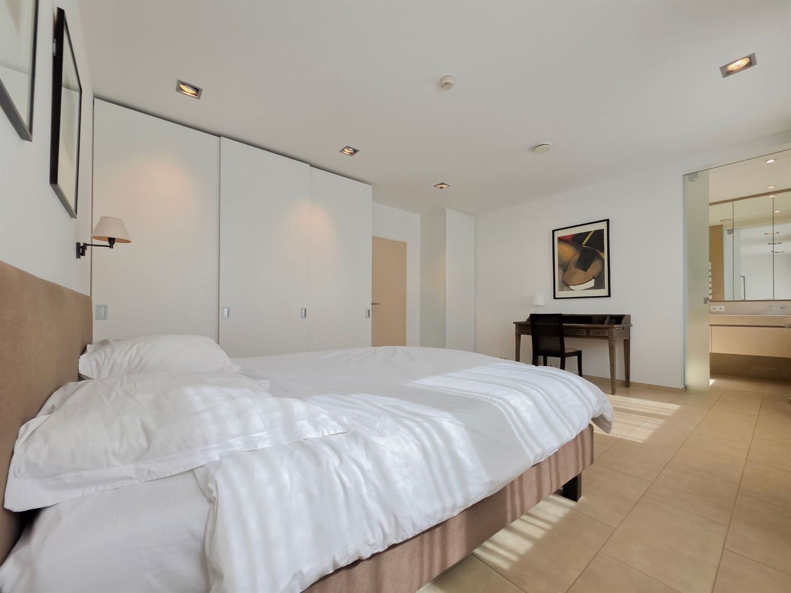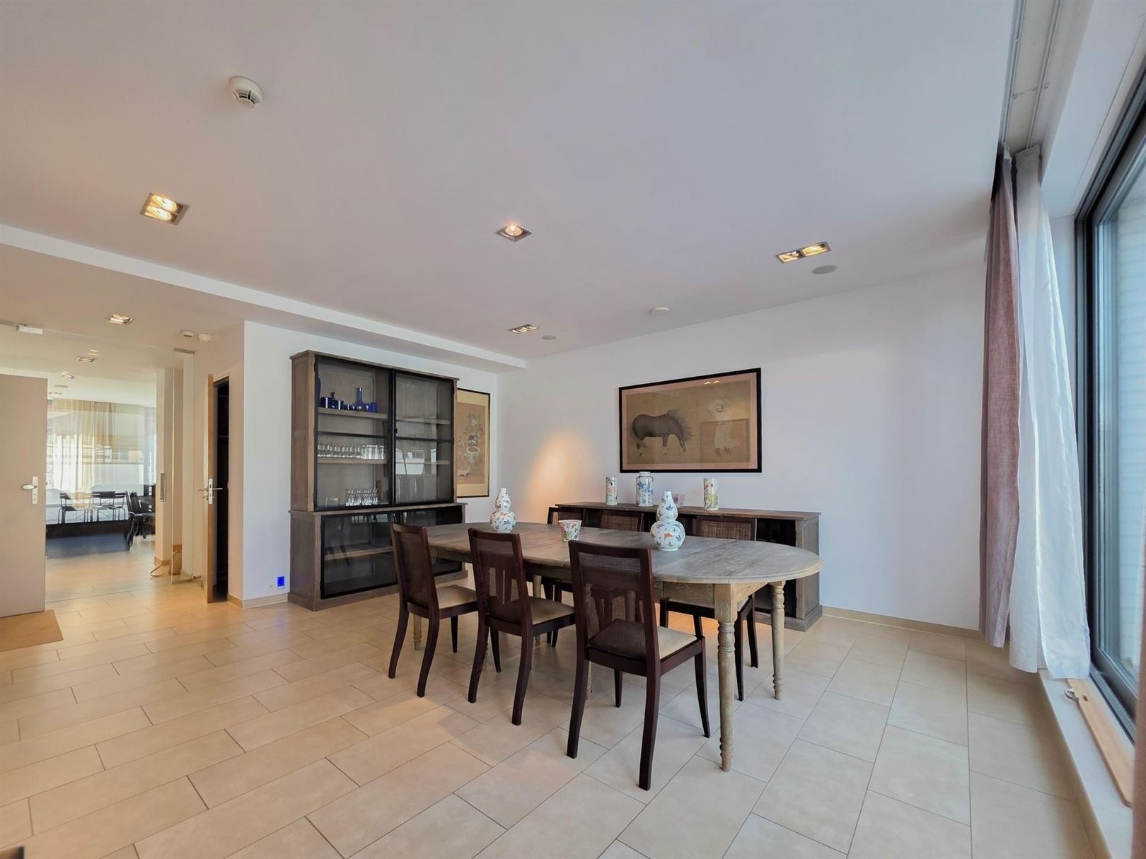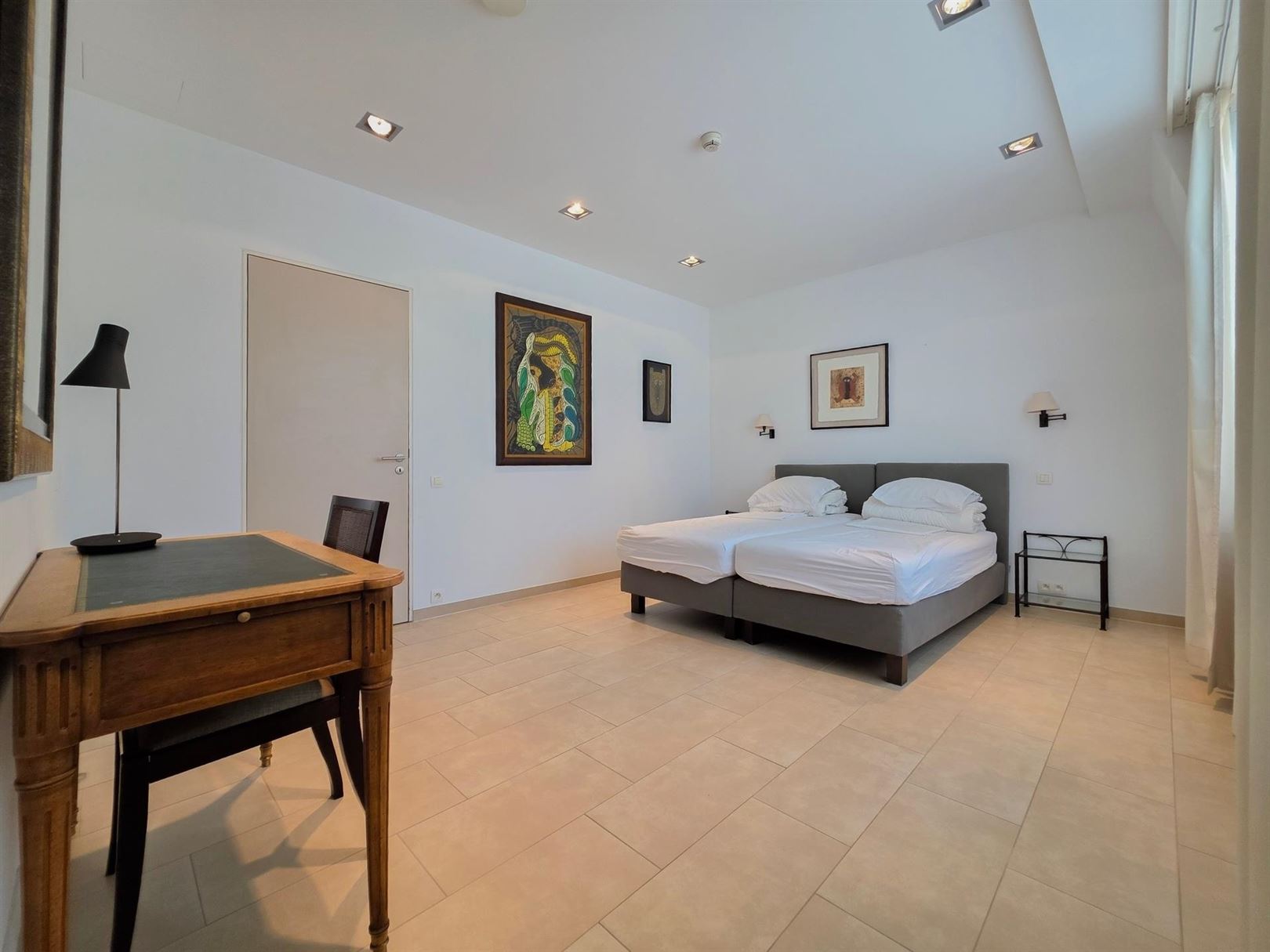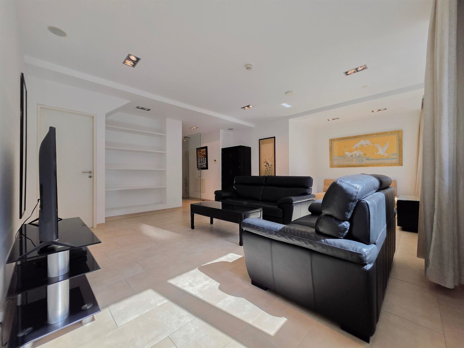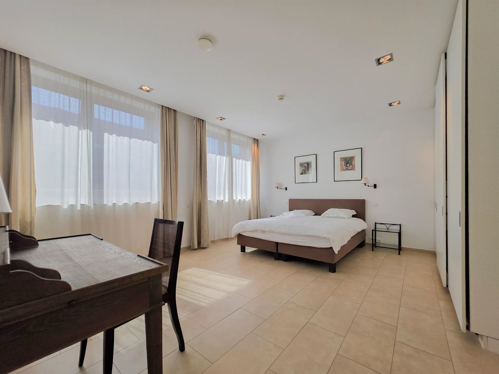 In the immediate vicinity of the European Quarter – Place Jourdan – Parc Léopold. A furnished duplex penthouse apartment of approx. 200 m² with a terrace of approx. 100 m². Ground floor: An entrance hall with cloakroom leads to a spacious and bright living room extending onto the terrace. Dining room opening onto a fully equipped kitchen. Upstairs: the sleeping area comprises a master bedroom with dressing room and en-suite bathroom, a second bedroom with shower room, and a separate toilet. A third guest bedroom or study – Garage included on the ground floor. Features: secure residence, underfloor heating, electric shutters, concierge. This property benefits from numerous built-in cupboards and an excellent energy performance rating of PEB B- (currently being renewed). Service charges: €155/month comprising: €75 flat rate for communal areas and €80 provision for heating and hot water.