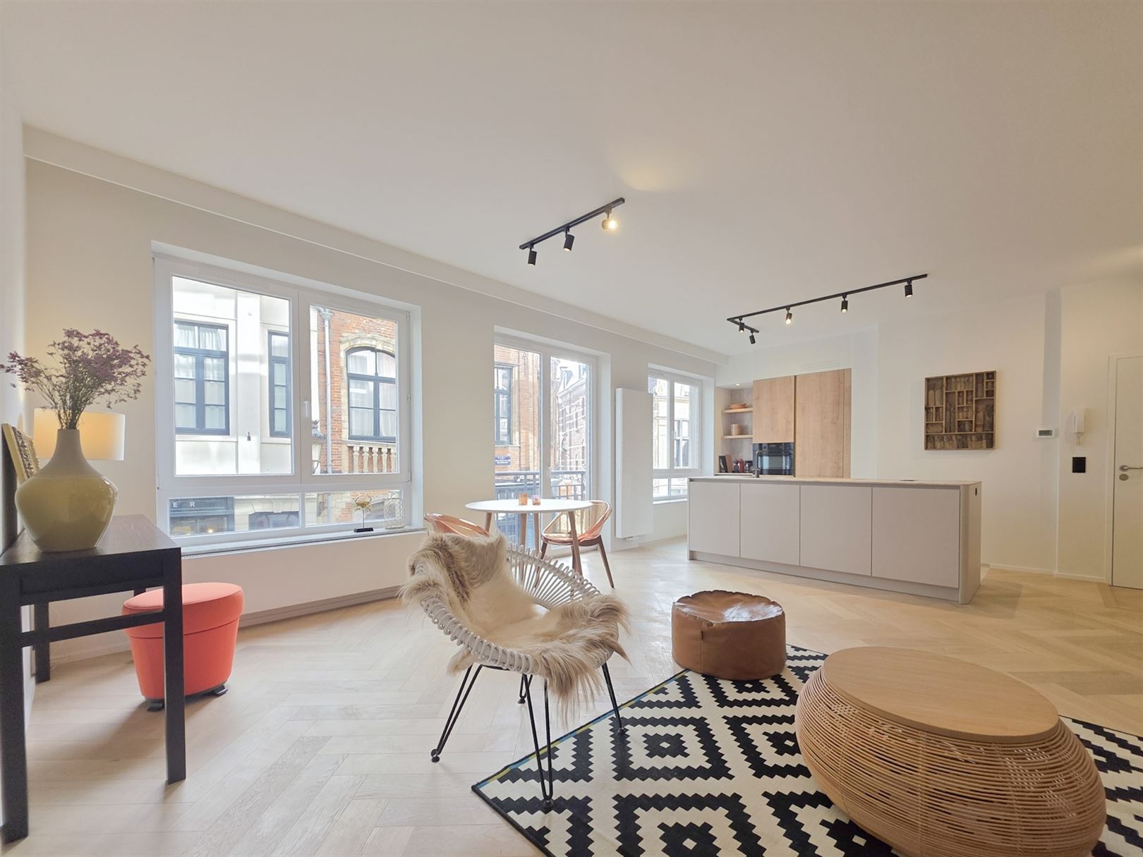 A proximité de la place Stéphanie et de la Place du Châtelain, magnifique appartement de prestige, rénové au 2ème étage d'un très bel Hôtel de Maître - Superficie +/- 180m2 - meublé - 2 ou 3 chambres dont une très grande - séjour avec salle à manger séparée - nouvelle cuisine super équipée et design - Salle de bains et salle de douche - hall d'entrée - hall de nuit - Possibilité de parking/garage à l'arrière de la maison - PEB : D+ / CO2 34