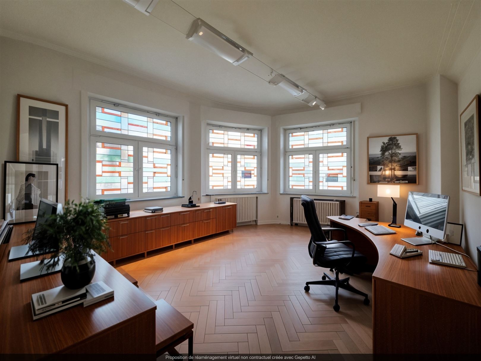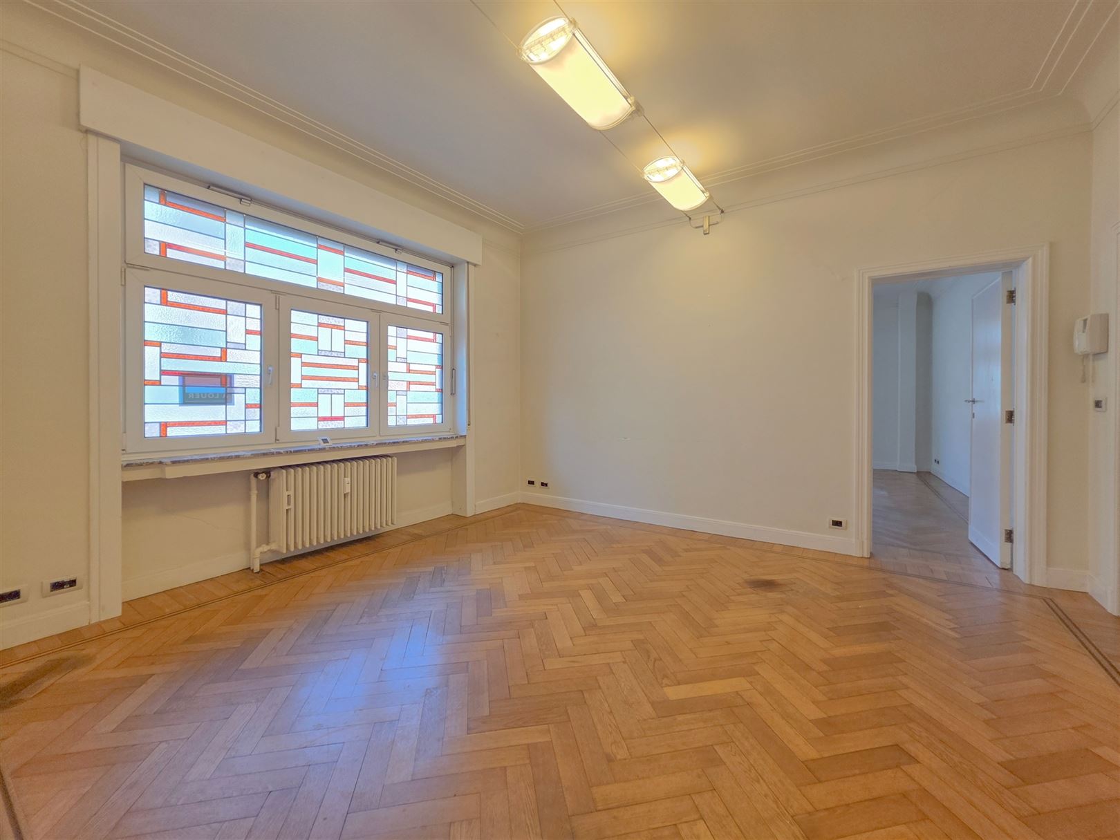 Quartier Molière - Brugmann - Charmant bureau style Art Déco pour profession libérale de +/- 50 m2 et situé au rez-de-chaussée d'un très bel immeuble de coin. Il se compose de 2 pièces agrémentées de parquet en bâtons rompus d'origine, poignées de portes et vitraux anciens, porte blindée - cabinet de toilette - Volets roulants aux fenêtres . Charges 250 € : eau, électricité, chauffage, précompte immobilier, assurance abandon de recours, services communs. Un cadre de travail unique par son cachet authentique et chaleureux. Agence Brussels Real Estate : 02.534.24.52 - info@brusselsrealestate.eu