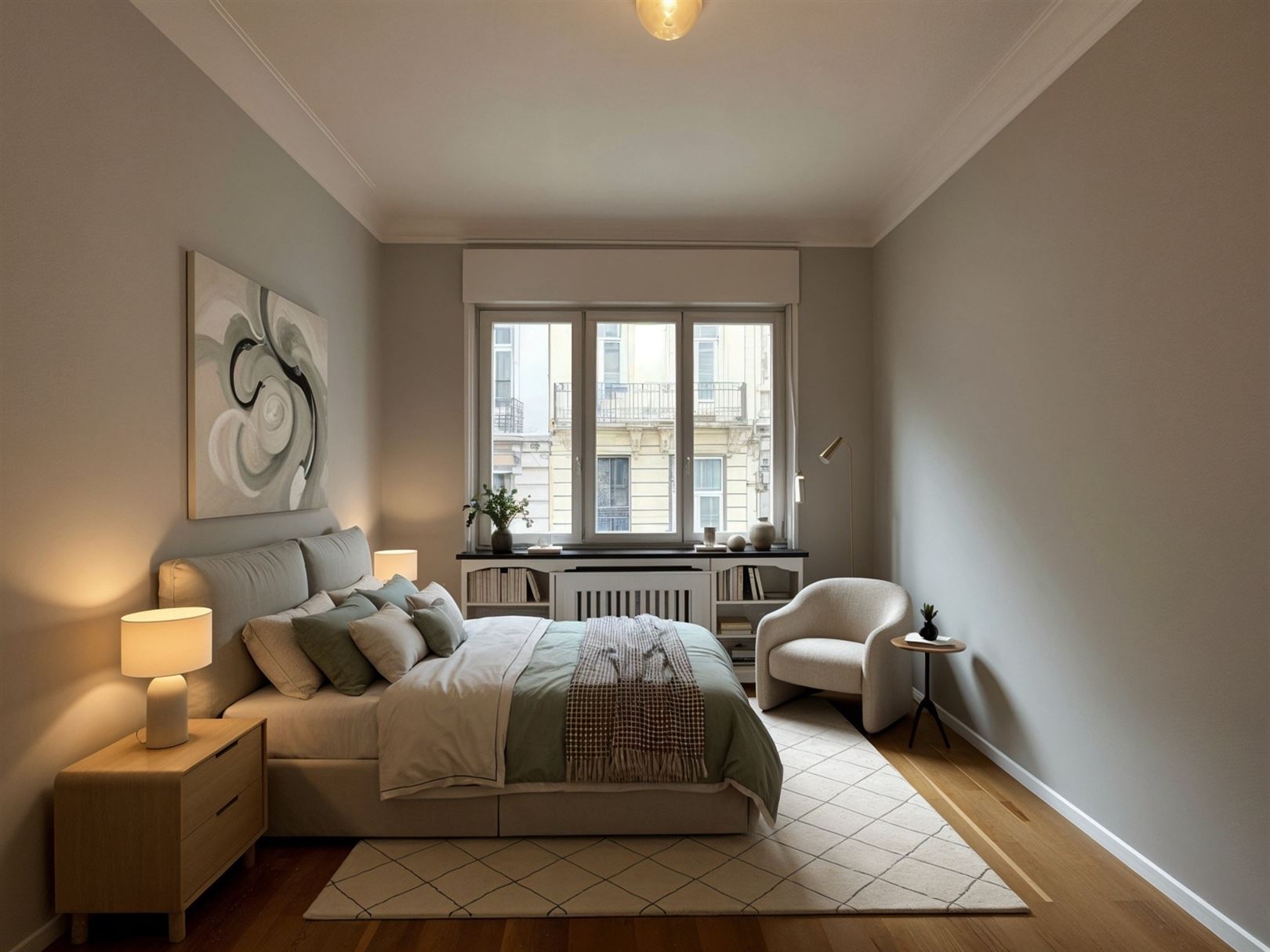 Quartier Louise / Stéphanie - Bel appartement +/-85 m2 au 1er étage d'un immeuble Art Déco composé de 2 chambres spacieuses - Salle de douche et salle de bains - un beau living avec cuisine américaine super équipée et un petit balcon - Hall d'entrée - Parquet en chêne et beaux volumes- Charges 250 €: communs, chauffage, eau chaude/froide - PEB = E