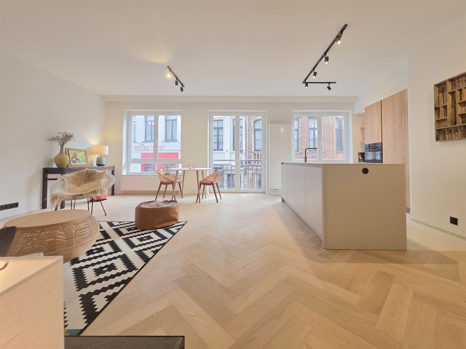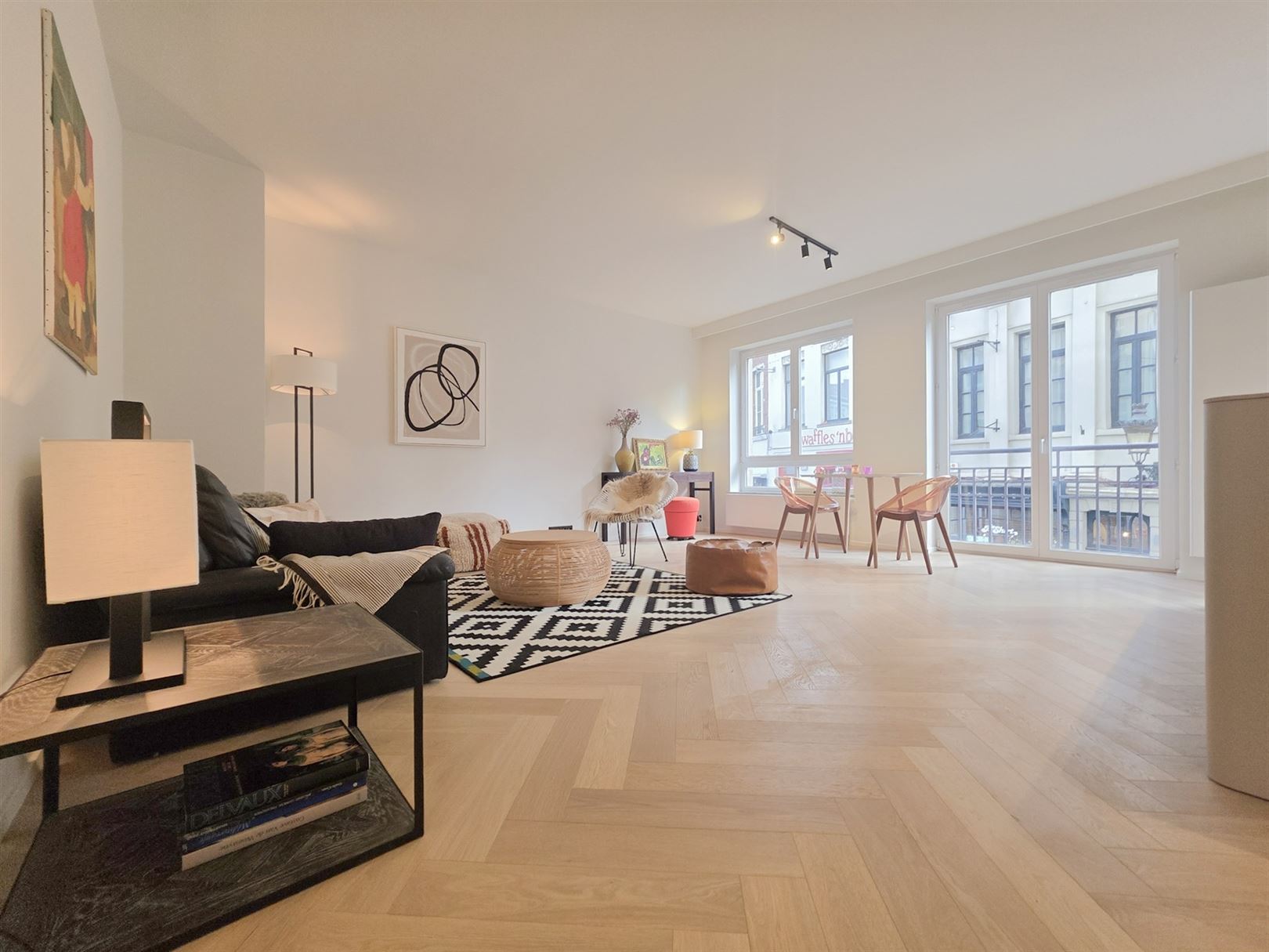 Grand-Place / Vieille Halle aux Blés– Superbe appartement rénové et meublé au cœur du centre historique de Bruxelles ! Magnifique bien de ±95 m² offrant un spacieux séjour baigné de lumière avec parquet, une cuisine américaine entièrement équipée, un hall de nuit avec dressing intégré, deux chambres (dont une aménagée en espace bureau) ainsi qu’une salle de bain tout confort avec buanderie équipée. La résidence bénéficie d’un superbe jardin privé accessible aux résidents, offrant un havre de paix unique en plein cœur de la ville. Ascenseur, finitions haut de gamme et emplacement exceptionnel à deux pas de la Grand-Place. PEB : D. Loyer : 1.850 € + Charges - Info & Visits - Brussels Real Estate : 02.534.24.52