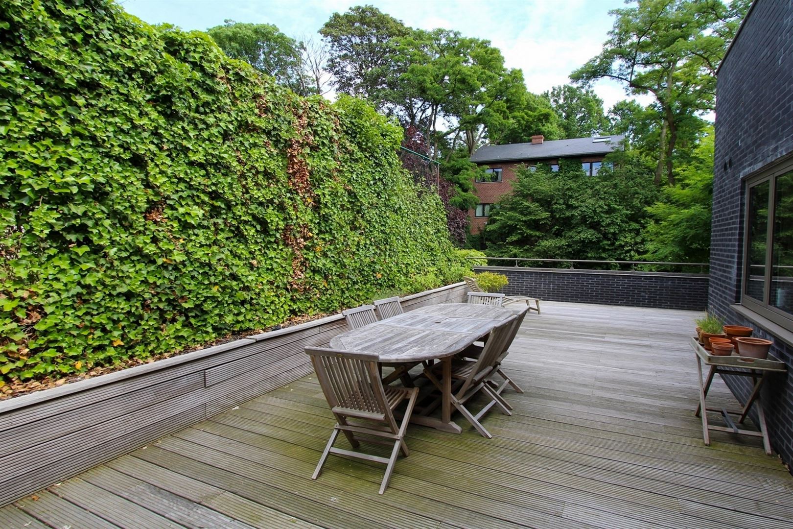 Fort Jaco - Bois de la Cambre. Magnifique duplex haut de gamme d’environ 215 m² rez de jardin et 1er étage agrémenté d’une superbe terrasse plein Sud de 70 m² . Il se compose d’un vaste living avec feu ouvert, cuisine hyper équipée, 3 chambres et spacieux espace bureau, 2 salles d’eau (1 salle de bains complète et 1 salle de douche - 3 WC- Nombreux placards -Finitions haut de gamme et parquet dans toutes les pièces. Possibilité de 1 à 2 emplacements de parking (140 € / emplacement). Charges de 200 € (eau froide privative et entretien des parties communes). PEB D+ (2012). Libre à partir du 15 mai 2026.