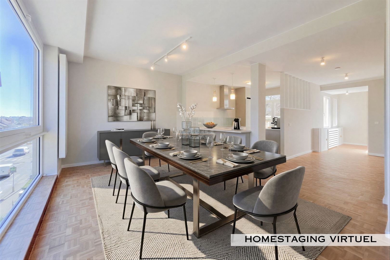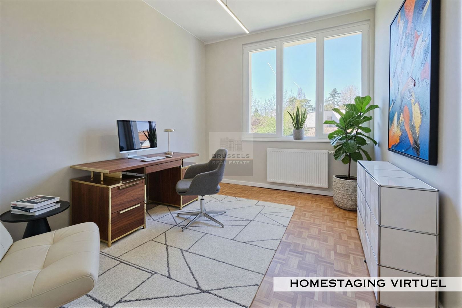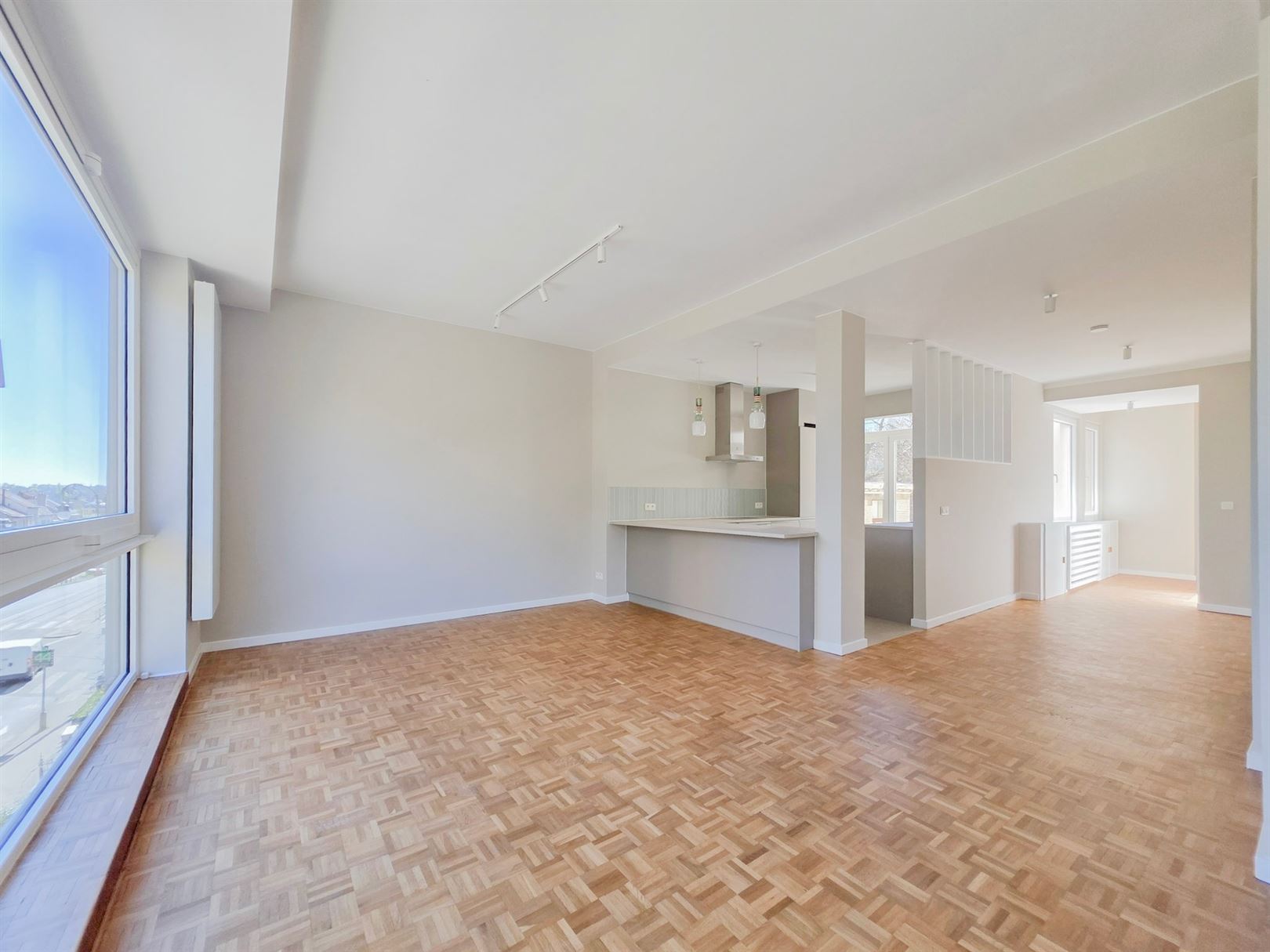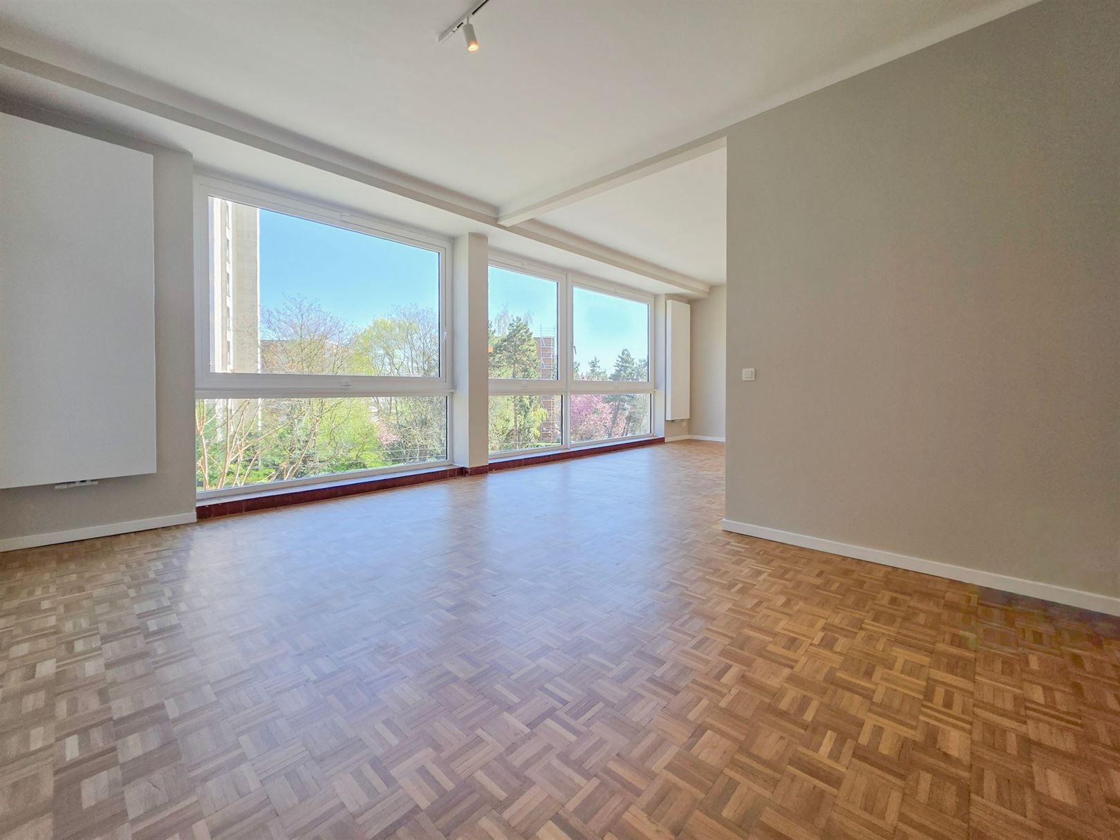 Parc Brugmann - Superbe appartement entièrement rénové d’environ 125 m² niché dans un immeuble avant-gardiste des années 30 signé par l’architecte René Soetewey. Baigné de lumière grâce à ses larges baies vitrées, il offre un agréable séjour avec espaces salon et salle à manger - Cuisine neuve hyper-équipée - hall d’entrée avec penderie - Cabinet de toilette -Buanderie – Hall de nuit - Chambre principale ±17 m² avec salle de bain - Seconde chambre ±10 m² avec salle de douche. En complément, une annexe ± 5 m² au dernier étage (en cours de rafraîchissement) offre un espace idéal pour un bureau ou pièce polyvalente. Une terrasse commune sur le toit d’environ 20 m² vient parfaire l’ensemble. Complément : châssis à isolation acoustique, vidéo phone, porte blindée, magnifique parquet mosaïque d’origine ainsi que deux caves en rez-de-chaussée. PEB : C+. Charges communes : 80 €/mois. Charges privatives : électricité, chauffage, eau, internet et assurance. LOcation possible sous contrat société".