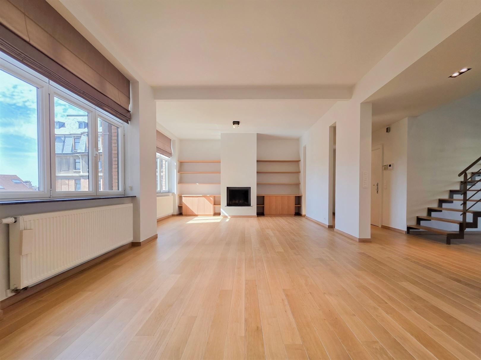 A proximité du Châtelain et de la place Stéphanie - Appartement contemporain exceptionnel de ±265 m² réparti sur deux niveaux distribuant 5 chambres et un bureau dans un immeuble de style Art Déco. Au premier niveau (4ème étage): hall d’entrée avec vestiaire - grand séjour lumineux - Parquet - Feu ouvert - Cuisine dinatoire séparée et hyper équipée - buanderie - couloir - Bureau/bibliothèque suivi d'une chambre/dressing -Salle de douche avec wc - Une suite matrimoniale avec salle de bain tout confort (bain à remous). À l’étage supérieur : deux ou trois chambres dont une ornée d'une élégante cheminée décorative - Seconde salle de bain tout confort. Un havre de lumière et de tranquilité. PEB: C- . Brussels Real Estate - Information & visites : info@brusselsrealestate.eu / +32.2.534.24.52